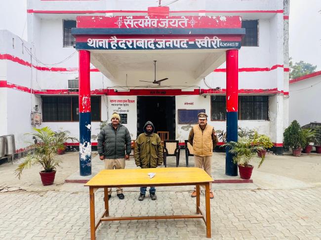 लखीमपुर खीरी। पुलिस अधीक्षक खीरी गणेश प्रसाद साहा के निर्देशन में सम्पूर्ण जनपद में,अपराध एवं अपराधियों के विरुद्ध चलाये जा रहे अभियान के अंतर्गत अपर पुलिस अधीक्षक खीरी के निकट पर्यवेक्षण व क्षेत्राधिकारी गोला के कुशल मार्ग दर्शन तथा प्रभारी निरीक्षक थाना हैदराबाद शिवा जी दुबे के नेतृत्व में थाना हैदराबाद खीरी की पुलिस टीम द्वारा दिनांक 05.01.2025 को वाहन चेकिंग के दौरान रात्रि समय 20.30 बजे घटनास्थल कुईयाडीह बडी नहर पुलिया से एक नफर अभियुक्त दिग्विजय पुत्र मूलचन्द उम्र करीब 25 वर्ष निवासी ग्राम छिछौना थाना हैदराबाद जनपद खीरी को एक अदद नाजायज तमन्चा 315 बोर व एक अदद जिन्दा कारतूस 315 बोर के साथ गिरफ्तार कर विधिक कार्यवाही हेतु न्यायालय खीरी के समक्ष भेजा गया ।