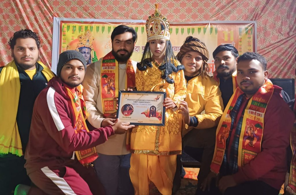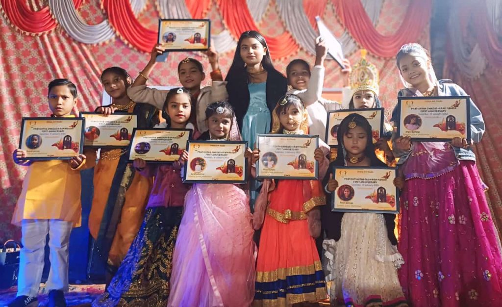 बदायूं। विजयनगर कॉलोनी के शिब मंदिर पर आज अयोध्या में विराजमान भगवान श्री राम लला के प्राण प्रतिष्ठा की प्रथम वर्षगांठ के अवसर पर शिव मंदिर पर छोटी छोटी बच्चों ने मंदिर मे संस्कृत कार्यक्रम कर खुशी मनाई जिसमें बच्चों ने भगवान राम के भजनों पर डांस किया मंदिर के पुजारी ने पुरस्कार वितरण करें