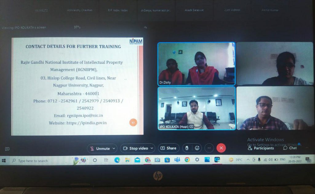 उन्होंने कहा कि वेबैक्स एप के माध्यम से आयोजित कार्यक्रम में अतिथि वक्ता के रूप में संबोधित करते हुए वाणिज्य मंत्रालय द्वारा नियुक्त एग्जामिनर आफ पी एण्ड डी पीआईआईटी यासिर अब्बास जैदी ने बौद्धिक संपदा अधिकार को विभिन्न उदाहरणों के द्वारा रोचक ढंग से समझाते हुए कहा कि भारत एक प्राचीन देश है यहां की प्रतिभाएं देश हित में पेटेंट तथा कॉपीराइट कर अपनी बौद्धिक संपदा की सुरक्षा भारत सरकार के कोलकाता, मुंबई, चेन्नई एवं दिल्ली स्थित पेटेंट संस्थानों के माध्यम से कर सकते हैं।