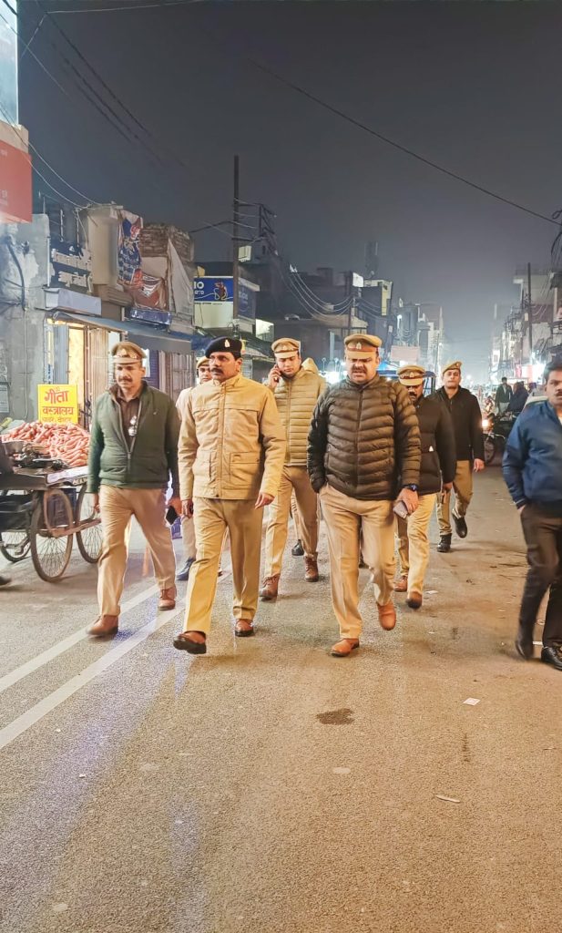 पुलिस अधीक्षक खीरी संकल्प शर्मा के निर्देशानुसार में सुरक्षा की दृष्टि को देखते हुए सीओ सिटी रमेश कुमार तिवारी द्वारा सदर कोतवाली प्रभारी अंबर सिंह एवं पूरे पुलिस फोर्स के साथ सदर चौराहा मिश्राना, बक्सा मार्केट, संकटा देवी चौराहा, हीरालाल धर्मशाला चौराहा, एवं लखीमपुर रेलवे स्टेशन पर पैदल गस्त करते हुए संदिग्ध लोगों से पूछताछ की गई। और नगर में शांति सुरक्षा बनाए रखने के लिए संदिग्ध लोगो को हिदायत दी गई।