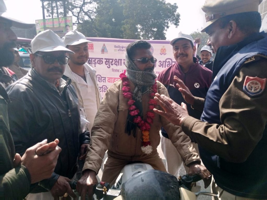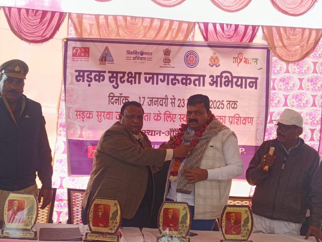 औरैया।नेहरू युवा केंद्र औरैया खेल मंत्रालय भारत सरकार के तत्वाधान में सड़क सुरक्षा सप्ताह जागरूकता अभियान का शुभारंभ देवकली चौराहे पर हुआ यह कार्यक्रम 17 जनवरी से 23 जनवरी तक अनवरत चलाया जाएगा इसमें स्वयंसेवकों की भूमिका रहेगी कार्यक्रम के मुख्य अतिथि माल्यार्पण कर प्रतीक चिन्हदेकर सम्मानित किया गया इस अवसर पर नगर पालिका परिषद औरैया के अध्यक्ष अनूप गुप्ता ने कहा हम सभी लोगों का उत्तरदायित्व है यातायात के नियमों का पालन करें और अपनी जान जोखिम मेंडालकर वाहनको ना चलाएं नशे की हालत में किसी कीमत पर भी वाहनका उपयोग न करें आज युवा लोगों को देखा गया है की गाड़ियों से स्टंट करते हैं ऐसी हरकतें कतई ना करें इससे जान जोखिम में डाली जा सकती है हम सभी लोगों का उत्तरदायित्व है खुद तो जागरुक हो औरों को भी जागरूक करें जिससे समय में होने वाली दुर्घटनाओं से बचाव हो सके कार्यक्रम की विशिष्ट अतिथि यातायात प्रभारी देवेंद्र कुमार ने कहा हमारा जीवन अमूल्य है इसको सुरक्षित रखने के लिए यातायात के नियमों का पालन करें सड़क पर हमेशा संकेतकचिन्ह बने होते हैं उनका पालन करें हेलमेट का प्रयोग करें जो हमें सुरक्षा प्रदान करता है एक्सीडेंट से डेढ़ लाख मौतें होती है यह सब सावधानी बरतने का कारण है यातायात के नियमों का पालन करेंगे तो हमारा जीवन सुरक्षित रहेगा घर परिवार में खुशियां रहेगी कार्यक्रम के प्रभारी डिप्टी डायरेक्टर नेहरू युवा केंद्र अनवर वारसी ने सभी का आभार व्यक्त करते हुए कहा युवा देश की जान है शान है उनका उत्तरदायित्व है यातायात के नियमों का स्वयं पालन करें औरों को भी जागरूक करें जागरूकता ही समाज को नई दिशा दे सकती है समाज जागरूक होगा तो हमसुरक्षित रह सकेंगे अंत में आए हुए सभी अतिथियों का एवं कार्यकर्ताओं का आभार व्यक्त करते हुई बधाई दी इस अवसर पर प्रमुख रूप से अरविंद कठेरिया क पांडे अनुज यादव यातायात सहयोगी एवं शिव सिंह मनीष कुमार मोहित राठौड़ वेद प्रकाश गजेंद्र सिंह सुधांशु सनी यादव जयप्रकाश वेद कुमार मानसिंह सहित सैकड़ो कार्यकर्ता कार्यक्रम में उपस्थित रहे कार्यक्रम का संचालन योगाचार्य अजय कुमार ने किया।