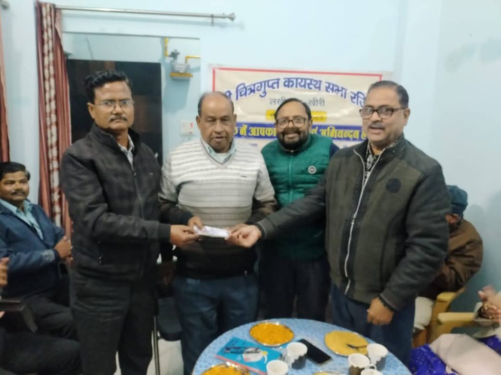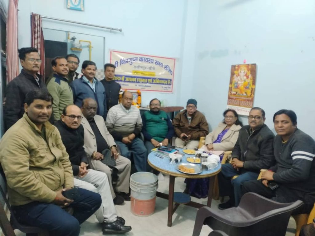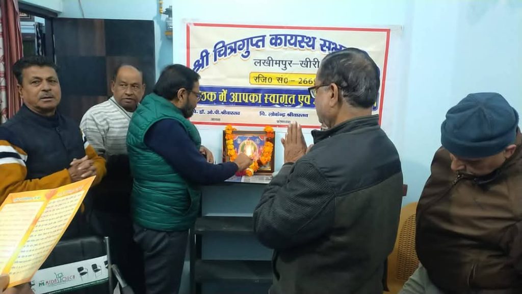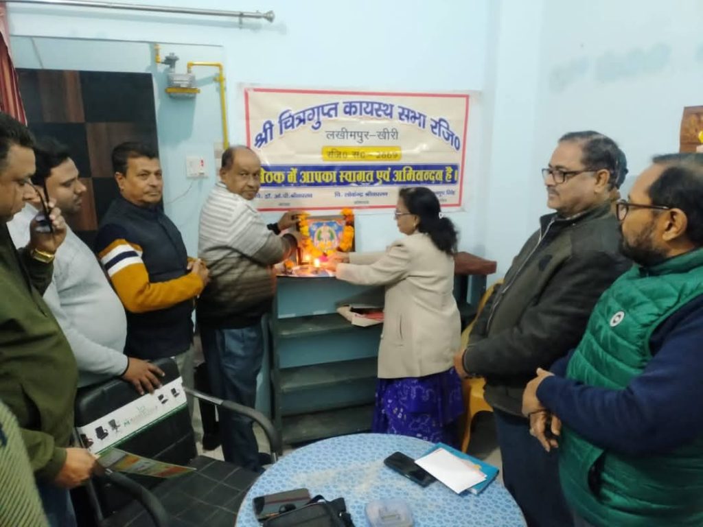 लखीमपुर। हर माह के तीसरे रविवार को पारंपरिक रूप से चल रही श्री चित्रगुप्त कायस्थ सभा लखीमपुर खीरी की मासिक बैठक का आयोजन आज यहां संस्था मंत्री इंजीनियर राजेश श्रीवास्तव के आवास पर मानवता का प्रदीप्त दीप प्रज्ज्वलित कर किया गया। बैठक की अध्यक्षता संस्थाध्यक्ष डॉक्टर ओम प्रकाश श्रीवास्तव ने की संचालन महामंत्री चित्रांश अनूप कुमार सिंह ने किया। मुख्य अतिथि के रूप में अखिल भारतीय कायस्थ महासभा के प्रदेश वरिष्ठ उपाध्यक्ष राजीव रत्न खरे एवं विशिष्ट अतिथि के रूप में संरक्षक शशिकांत श्रीवास्तव ने उपस्थित दर्ज करवाते हुए उपस्थित जनों का उत्साह बढ़ाया।
