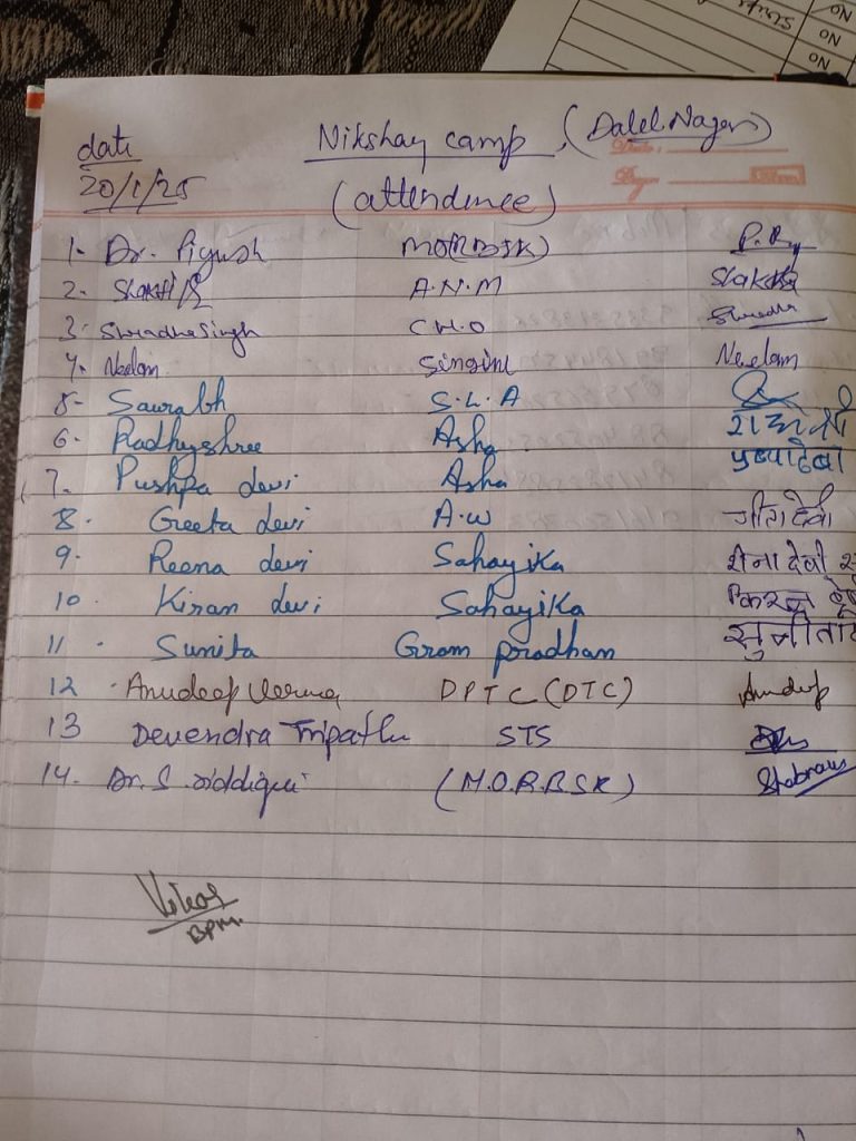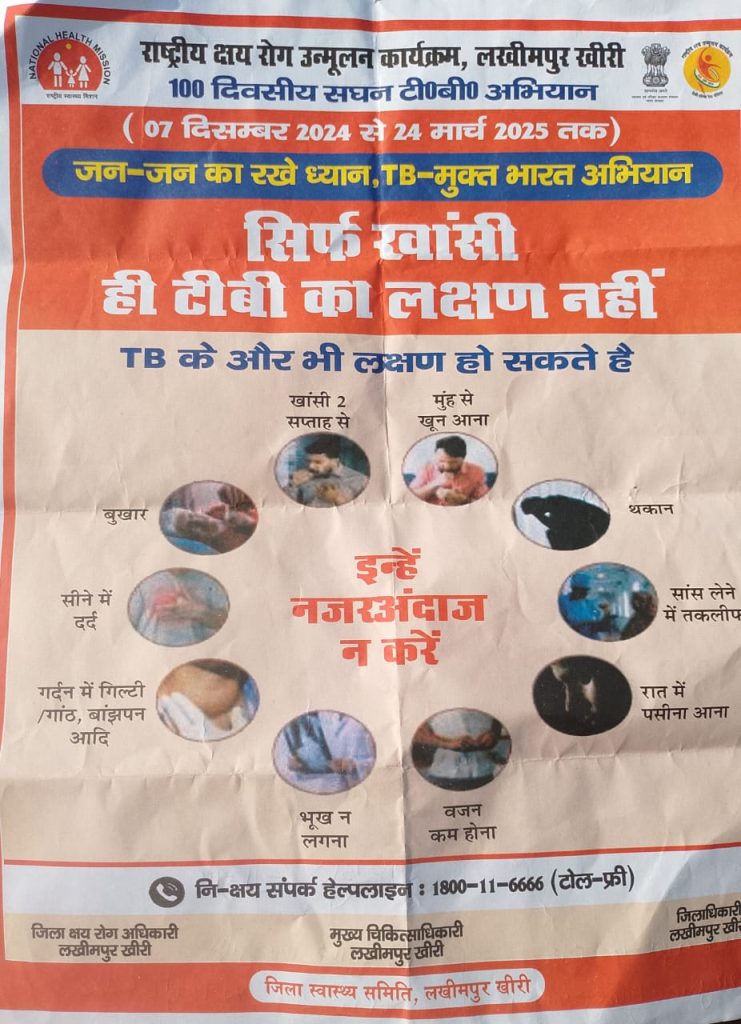 संचारी अभियान के तहत बताया गया कि सिर्फ खांसी ही टी0टी0 का लक्षण नहीं है जैसे की मुंह से खून आना, सांस लेने में तकलीफ़,रात में पसीना आना, सीने में दर्द ,भूख न लगना,वजन कम होना, आदि। लक्षण स्वास्थय विभाग द्वारा गांव में कैम्प लगाकर आशा घर घर जाकर लोगो को रोगो से बचाव के प्रति जागरुक कर रही है ताकि समय रहते उनका उपचार शुरु कराया जा सके ।ग्रामीणो को संदेश दिया ओर जागरूक भी किया इस कार्यक्रम में सी एच ओ डाoपीयूष ,डाoअनूदीप वर्मा ,डाo सनम, पुष्पा देवी, गीता देवी ,आशा राधेश्री,किरन देवी आदि लोग उपस्थित रहीं