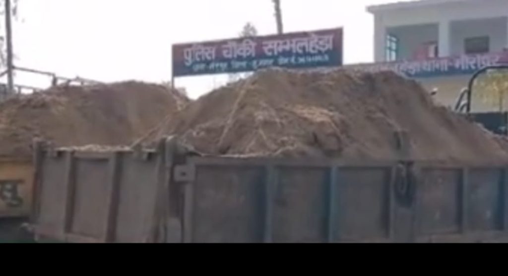 मुजफ्फरनगर मीरापुर क्षेत्र के संभललेडा पुलिस चौकी के निकट रात्रि में चल रहा था अवैध खनन मीरापुर क्षेत्र में इन दोनों खनन माफिया के हौसले बुलंद हैं, ग्राम संभललेडा के निकट अवैध खान की सूचना पर पहुंचे एसडीम सुबोध कुमार वह नायब तहसीलदार विपिन कुमार रात्रि में गस्त कर रहे थे एसडीएम ने बताया, संभाललेडा के निकट मिट्टी लेकर जा रहे दो ट्रैक्टर ट्राली को चीज कराया है एसडीएम के अनुसार घटनास्थल के,आस पास और क्षेत्र में कोई अनुमति नहीं थी तथा उक्त लोगों द्वारा रात के अंधेरे में अवैध खनन कर मिट्टी को ढोया जा रहा था, पुलिस ने दोनों ट्रैक्टर ट्राली को सीज कर दी बता दे कुछ दिन पहले भी एसडीएम सुबोध कुमार ने जे, सी, बी, वह दो ट्रैक्टर ट्राली सीज कराया था, तथा उसके बाद भी अवैध खनन करने वालों के क्षेत्र में हौसले बुलंद है मीरापुर क्षेत्र की संभललेडा पुलिस चौकी से 500 मीटर दूरी पर हो रहा अवैध खनन , संभललेडा पुलिस चौकी पर पुलिस कर्मियों की कार्य शैली,पर,सवाल, खड़े कर रहे हैं हैरत की बात यह है कि अवैध खनन कार्य के,लिये जेसीबी ट्रैक्टर ट्राली पुलिस चौकी से सामने से,गुजर रही है और पुलिस कोई कार्रवाई नहीं कर रही है क्षेत्र में चर्चा है संभाल लेडा पुलिस चौकी इंचार्ज वह पुलिसकर्मियों की मिली भगत से क्षेत्र में अवैध खनन कार्य चल रहा है