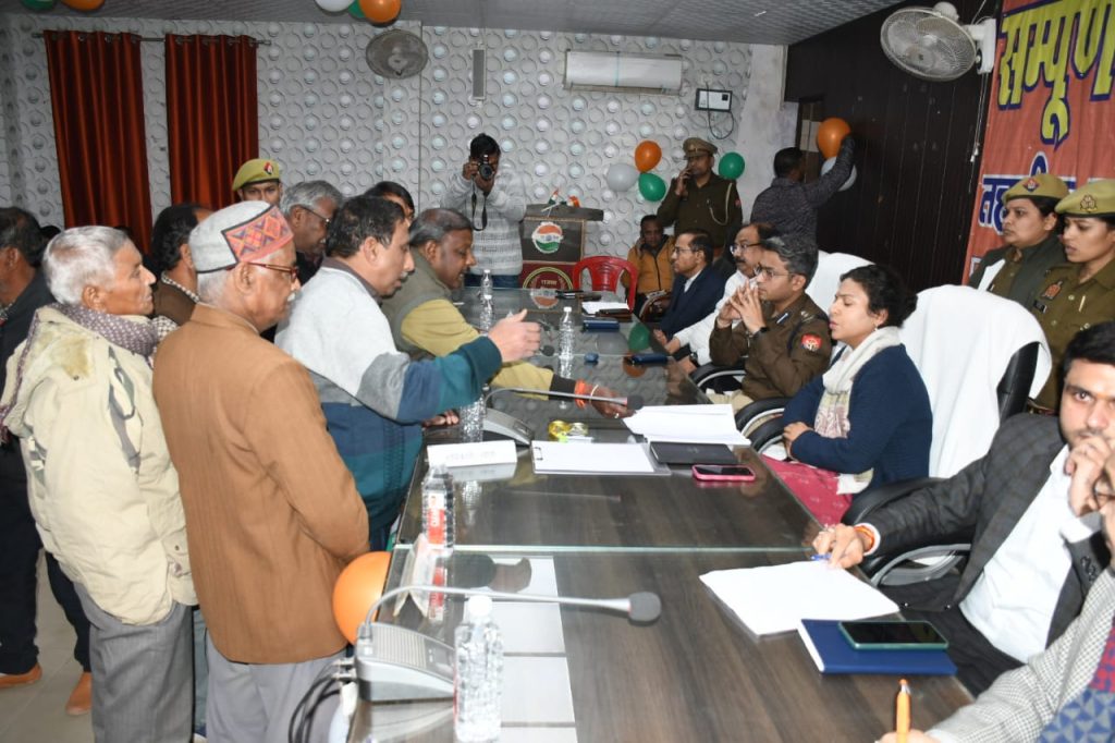 लखीमपुर खीरी आज दिनांक 20.01.2025 को जनपद के प्रत्येक तहसील स्तर पर “संपूर्ण समाधान दिवस” का आयोजन किया गया। जिलाधिकारी खीरी दुर्गा शक्ति नागपाल व पुलिस अधीक्षक खीरी संकल्प शर्मा के द्वारा तहसील गोला पर उपस्थित रहकर “संपूर्ण समाधान दिवस” की अध्यक्षता की गई। इस दौरान फरियादियों की समस्याओं को सुनकर संबंधित अधिकारियों को मौके पर जाकर जनशिकायतों की निष्पक्ष जाँच करके विधिक निस्तारण करने के निर्देश दिए गए। संपूर्ण समाधान दिवस में प्राप्त प्रार्थना पत्रो का समयबद्ध रूप से निस्तारण करने तथा जिन प्रार्थना पत्रो का निस्तारण उच्चाधिकारी स्तर से किया जाना है उन पर रिपोर्ट लगाकर सम्बंधित अधिकारी को प्रेषित करने के लिए निर्देशित किया गया। साथ ही महोदय द्वारा शिकायत पंजिका का निरीक्षण करते हुए निस्तारित हो चुकी शिकायतों के संबंध मे फीडबैक भी लिया गया।