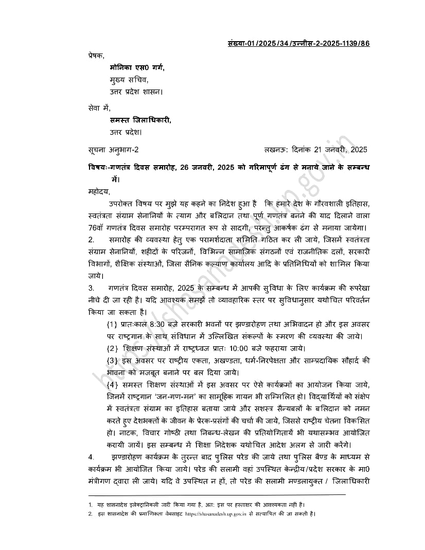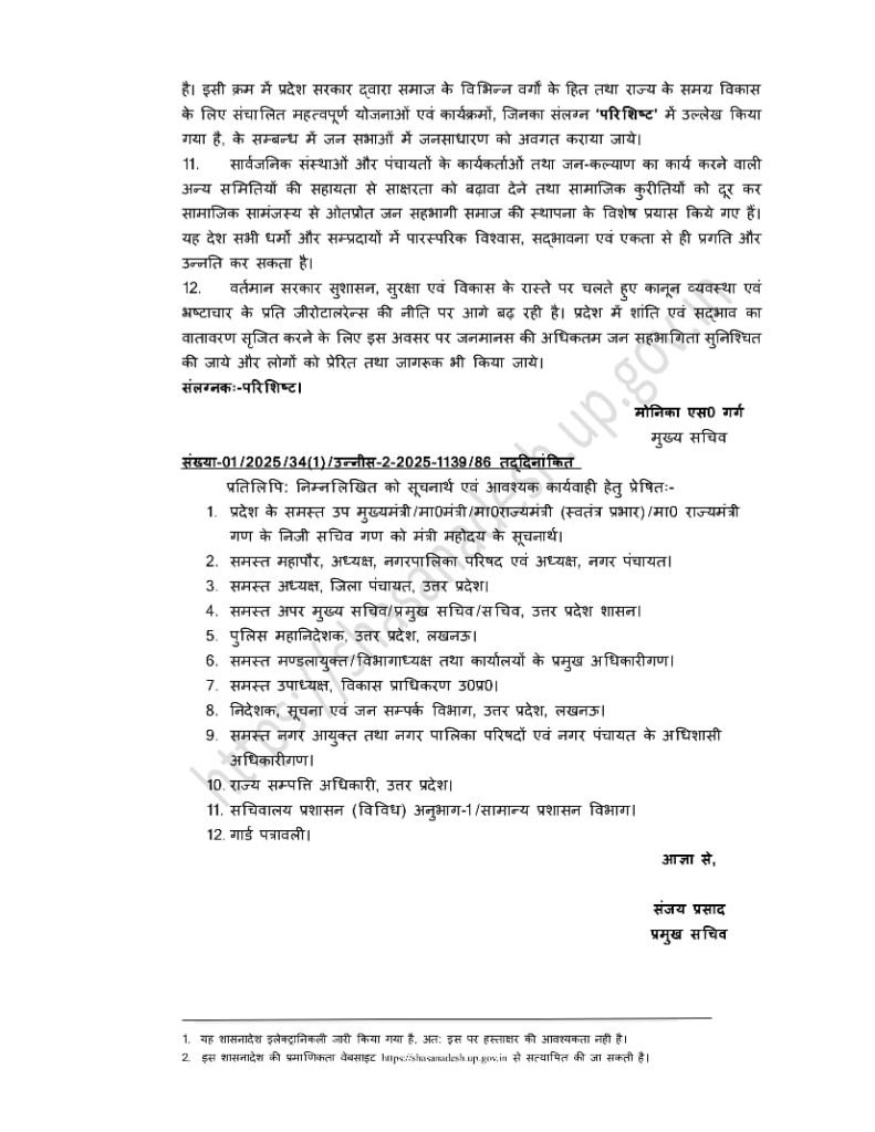 🔵सरकारी भवनों पर 8:30Am पर होगा ध्वजारोहण। 🔵शैक्षणिक संस्थानों में प्रातः 10 बजे किया जाएगा ध्वजारोहण। Post Views: 782 Share this: Click to share on Facebook (Opens in new window) Facebook Click to share on X (Opens in new window) X Click to share on LinkedIn (Opens in new window) LinkedIn Click to share on X (Opens in new window) X Click to share on WhatsApp (Opens in new window) WhatsApp Click to print (Opens in new window) Print Post navigation जरूरतमंदों को कंबल वितरण किया – कांग्रेस के प्रदेश उपाध्यक्ष एवम पार्षद परिषदीय विद्यालयों में मानक से अधिक तैनात शिक्षामित्र हटेंगे,जांच और कार्यवाही के आदेश..