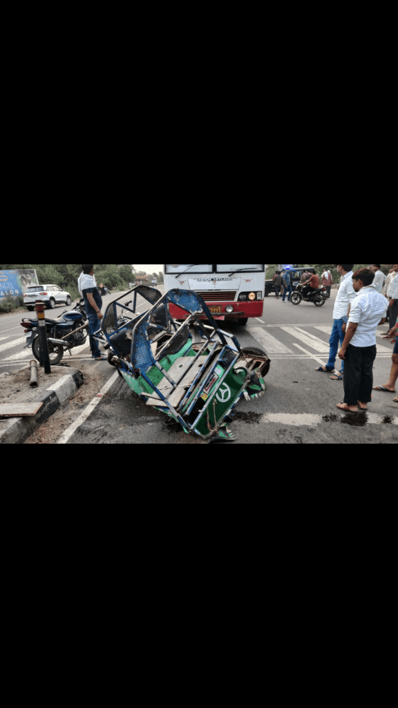 बिजनौर-तेज़ रफ़्तार रोडवेज बस ने ई-रिक्शा में मारी टक्कर।
