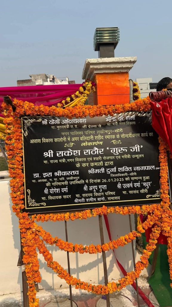 लखीमपुर खीरी में आज मोहल्ला आवास विकास में स्थित अमर बलिदानी शहीद स्मारक का शुभ उद्घाटन मुख्य अतिथि राकेश राठौर, राज्य मंत्री नगर विकास विभाग एवं योगेश वर्मा, सदर विधायक, नगर पालिका अध्यक्ष ईरा श्रीवास्तव की गरिमामयी उपस्थिति में सम्पन्न हुआ। इस विशेष अवसर पर नगर पालिका सभासदगण, अधिशासी अधिकारी, पालिककर्मियों सहित नगर की सम्मानित जनता भी उपस्थित रही।