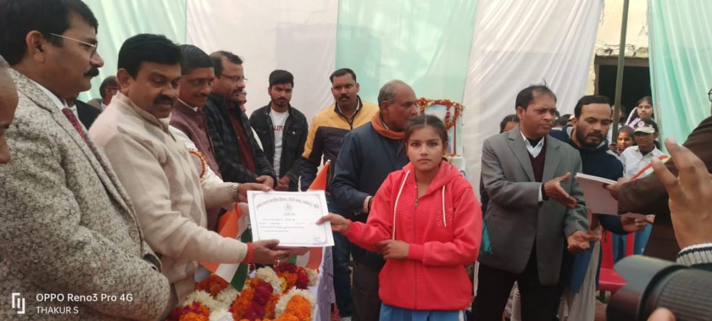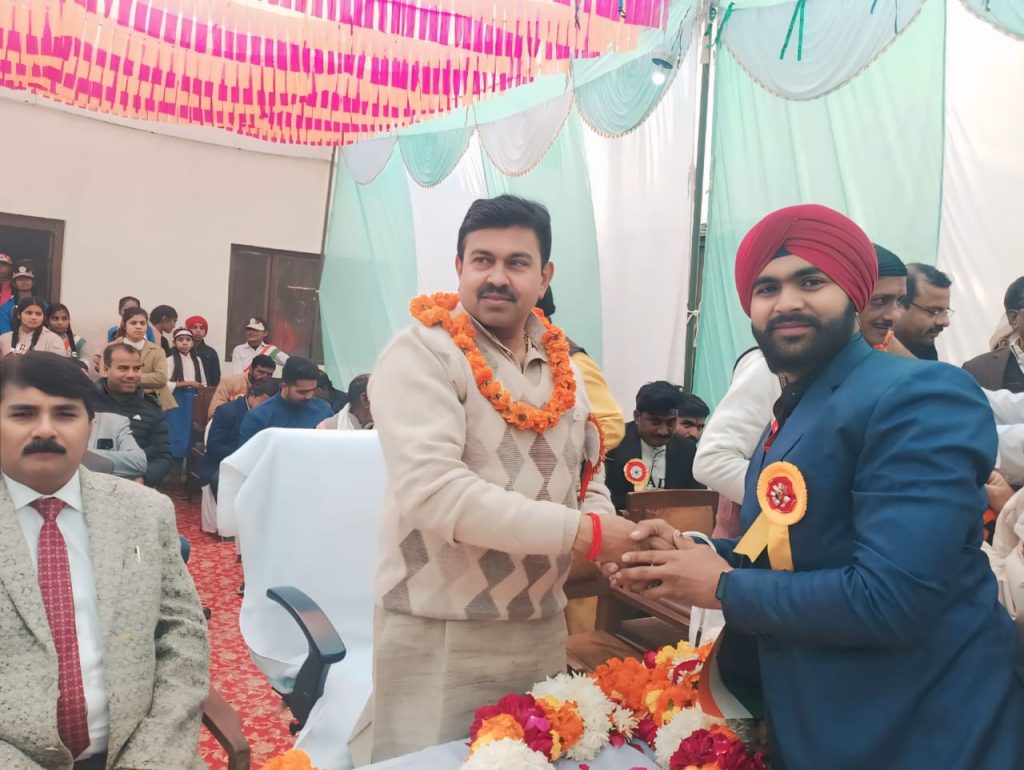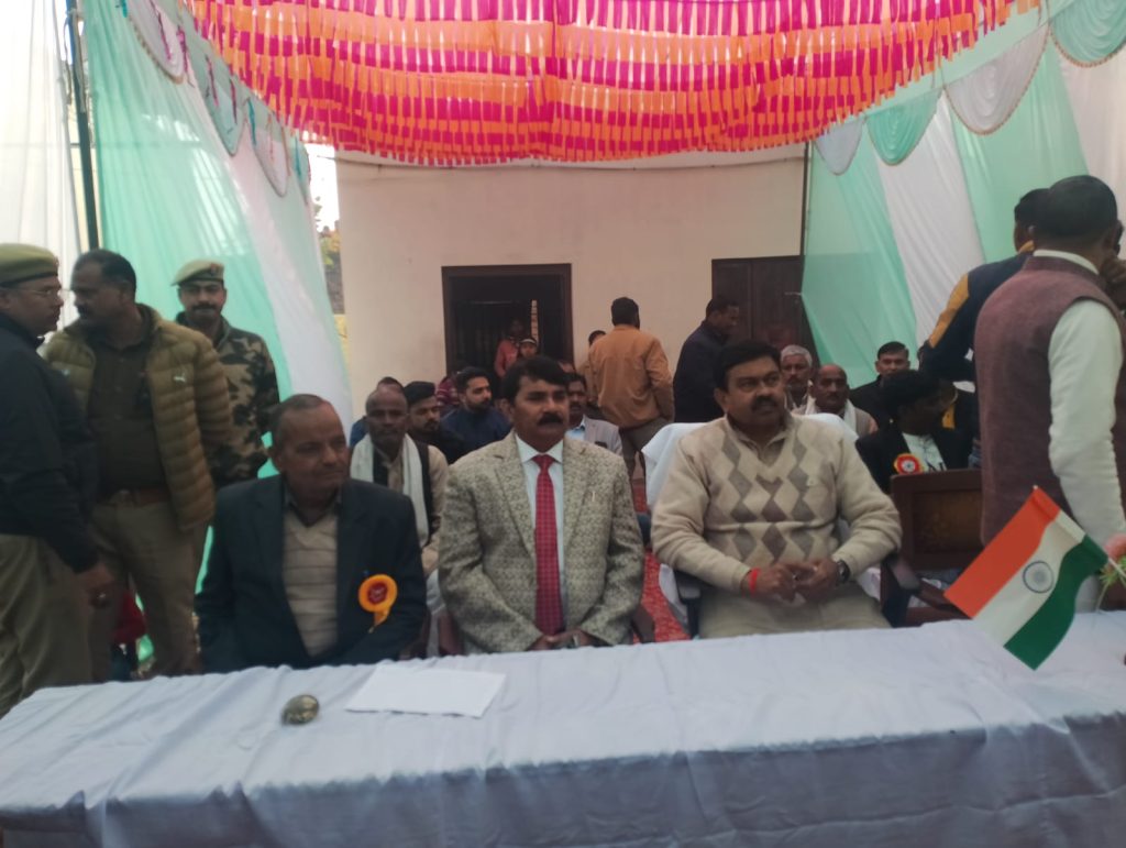आज दिनांक 26.01.2025 को कृषक उच्चतर माध्यमिक विद्यालय खइयांँ लखीमपुर में 76वां गणतंत्र दिवस बड़े हर्षोल्लास से मनाया गया स्कूल के बच्चों द्वारा देशभक्ति व साहस भरे सांस्कृतिक कार्यक्रम प्रस्तुत किए गए मुख्य अतिथि माननीय पूर्व गृह राज्य मंत्री श्री अजय कुमार मिश्र (टेनी) द्वारा प्रोग्राम किए गए बच्चों को पुरस्करित किए गए प्रोग्राम में काफी लोगों ने भाग लिया आए हुए सभी सम्मानित अतिथियों व पत्रकार बंधुओ का आभार प्रकट किया गया इस अवसर पर माननीय पूर्व गृह राज्य मंत्री श्री अजय कुमार मिश्र (टेनी), श्री अवधेश कुमार सिंह (एडवोकेट अध्यक्ष), श्री महेंद्र सिंह (अध्यक्ष), श्री हरिवंश वर्मा (प्रबंधक), पवन गुप्ता (प्रमुख नकहा), मइन खान ( प्रधान खैइयँ), इरशाद खान( प्रधान पयाग), कलामु (प्रधान फूलबेहड), सुशील कुमार( प्रधान वसहा), शिव प्रकाश यादव (जिला पंचायत सदस्य), विमलेश कुमार (पूर्व जिला पंचायत सदस्य), दीपक कुमार वर्मा (संचालक गन्ना समिति), भगवत शरण गिरी (सा० सभा अध्यक्ष), फूलचंद्र (प्रधानाचार्य ),