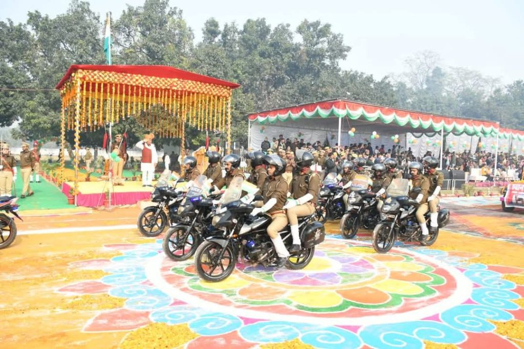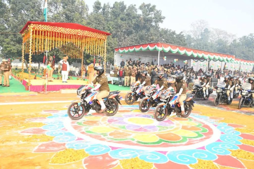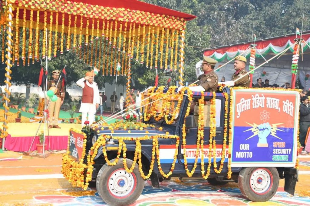 तत्पश्चात नागरिक पुलिस, कोबरा मोटरसाइकिल, डॉग स्क्वाड, अग्निशमन पुलिस, रेडियो शाखा, यू०पी० 112 दोपहिया व चारपहिया वाहनों, फील्ड यूनिट, होमगार्ड की टुकड़ियों द्वारा मार्च पास्ट व हर्ष फायरिंग कर राष्ट्रध्वज को सलामी दी गई। परेड के दौरान परेड मार्च पास्ट व हर्ष फायरिंग, फायर सर्विस द्वारा तिरंगा झण्डे की जलधारा, विभिन्न टुकड़ियों द्वारा मार्च पास्ट, मोटर साईकिल व यूपी-112 दस्ता ने उत्कृष्ट प्रदर्शन करते हुये दर्शकों का मनमोह लिया गया। इस अवसर पर मुख्य अतिथि राकेश राठौर ‘गुरु’ के द्वारा परेड को सम्बोधित करते हुए संविधान की विशेषता के विषय पर उद्बोधन किया गया तथा पुलिस अधीक्षक खीरी संकल्प शर्मा द्वारा सभी को संविधान की शपथ दिलाई गई।