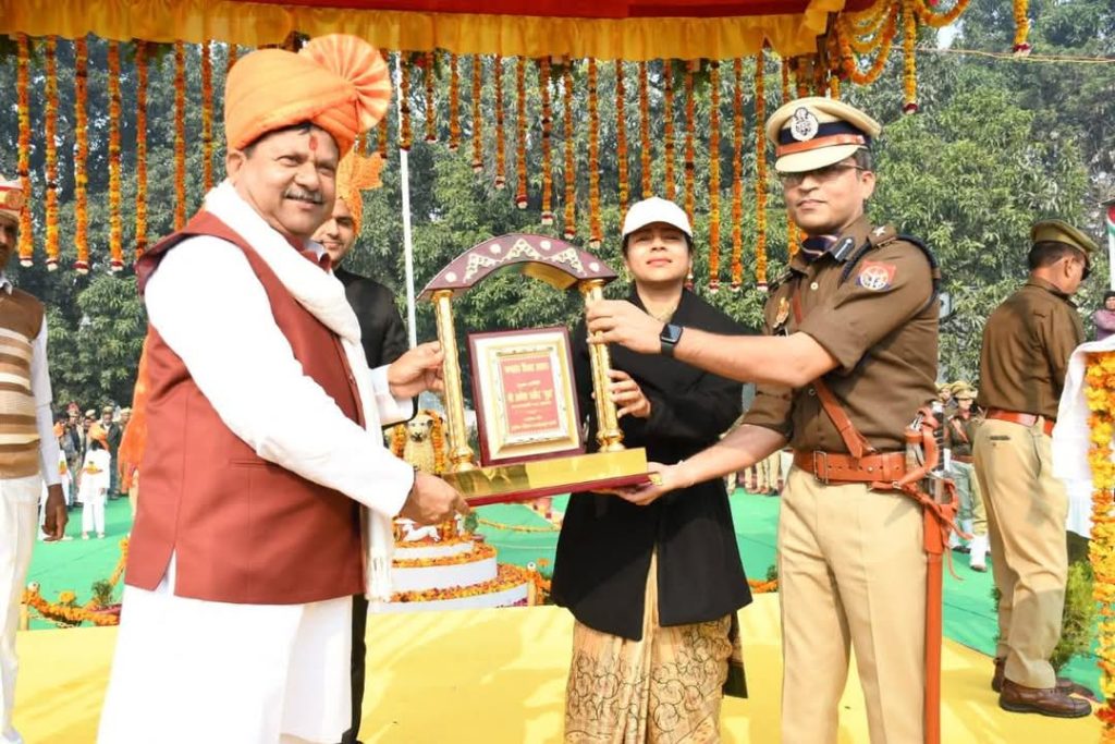 तदोपरांत सराहनीय कार्य हेतु प्रदत्त प्रशस्ति पत्र को मुख्य अतिथि के द्वारा प्रभारी निरीक्षक अंबर सिंह थाना कोतवाली सदर जनपद खीरी को प्रदान किया गया तथा उन्हें बधाई दी गई। तत्पश्चात उत्कृष्ट व सराहनीय कार्य कर जनपद पुलिस का नाम बढ़ाने वाले पुलिस अधिकारी/कर्मचारीगण को प्रशंसा चिन्ह व प्रशस्ति पत्र भी प्रदान किया गया। इसी क्रम में परेड मे उत्कृष्ट प्रदर्शन करने वाले प्रथम कमांडर महक शर्मा क्षेत्राधिकारी निघासन, द्वितीय साधना यादव चौकी प्रभारी कस्बा खीरी व तृतीय कमांडर उ0नि0 युगेन्द्र पाल सिंह उ0नि0 यातायात को सम्मानित किया गया। परेड के पश्चात् विभिन्न विद्यालयों के बच्चों द्वारा देशभक्ति व साहस भरे सांस्कृतिक कार्यक्रम प्रस्तुत किए गए। निर्णायक मण्डल द्वारा उत्कृष्ट प्रदर्शन करने वाली टोली न0 01 सशस्त्र पुलिस के कमांडर म0उ0नि0 अर्पिता शुक्ला को प्रथम स्थान, टोली नं0 07 के कमांडर उ0नि0 शुभम कुमार को द्वितीय स्थान तथा टोली नं0 02 का प्रतिनिधित्व करने वाले कमांडर उ0नि0 युवराज बाल्यान को तृतीय स्थान प्राप्त हुआ।
