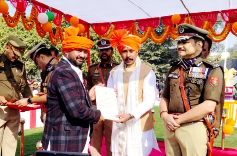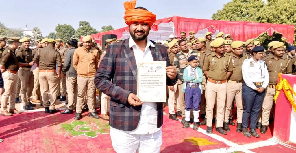 वाराणसी मिशन समाज सेवा के राष्ट्रीय अध्यक्ष शिव कुमार तिवारी डम्पी (बाबा) को आज 26 जनवरी के शुभ अवसर पर पुलिस लाइन में वाराणसी के कमिश्नर मोहित अग्रवाल के द्वारा इनके द्वारा किए जा रहे निरंतर समाज सेवा के लिए सम्मानित किया।