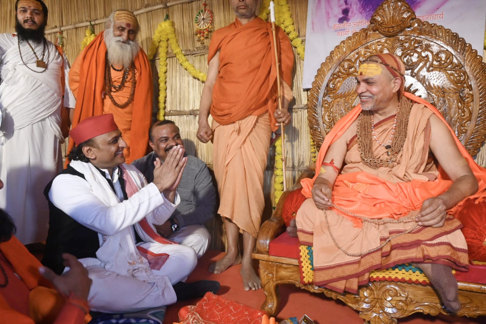 अखिलेश यादव व राजा भैय्या ने दर्शन कर लिया जगद्गुरू शंकराचार्य स्वामी अविमुक्तेश्वरानंद सरस्वती जी महाराज से आशीर्वाद।