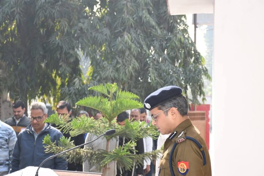 लखीमपुर खीरी आज दिनांक 30.01.2025 को “शहीद दिवस” पर पुलिस अधीक्षक खीरी संकल्प शर्मा के द्वारा पुलिस अधीक्षक कार्यालय परिसर में भारत माता के अमर सपूत वीर शहीदों का नमन कर 02 मिनट का मौन धारण कर श्रद्धांजलि दी गई। इसके साथ ही जनपद के समस्त पुलिस थानों/चौकियों/कार्यालयों में भी वीर शहीदों को श्रद्धांजलि अर्पित की गई।