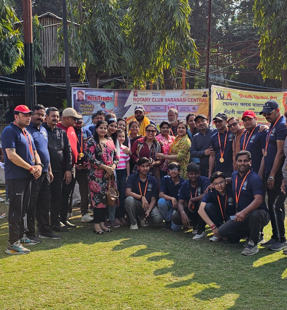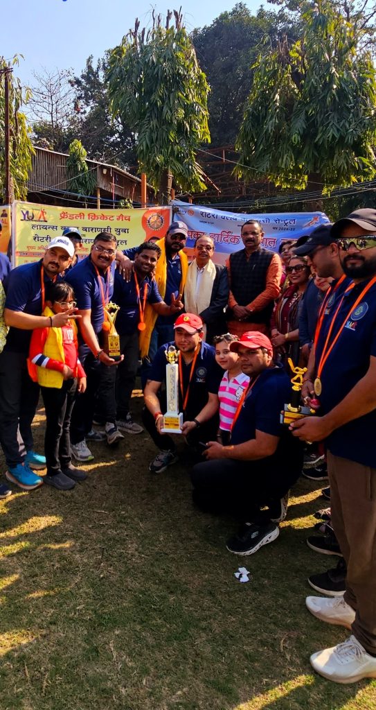 रोटरी सेंट्रल ने 16 ओवर मे 75 रन बना पाई।लायंस क्लब वाराणसी युवा के टीम लक्ष्य का पीछा करते हुए.. मात्र 7 ओवर मे 3 विकेट खो कर मैच और ट्रॉफी जीत लिया।कप्तान लायन पीयूश मौर्या पी डी जी लायन दीपक अग्रवाल अध्यक्ष लायन सुमित गुप्ता जोन चेयर पर्सन एमजेएफ लायन संजय गुप्ता ने अपनी टीम के साथ बिजेता ट्रॉफी लिया!
