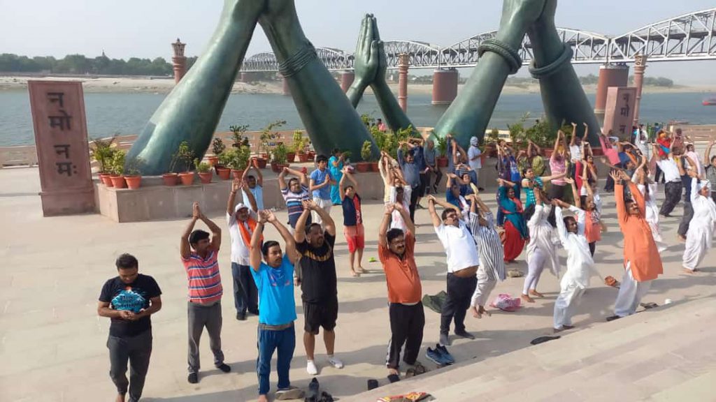उक्त अवसर पर प्रधानमंत्री नरेंद्र मोदी के ड्रीम प्रोजेक्ट नमो घाट पर सूर्य नमस्कार का भी आयोजन किया गया।