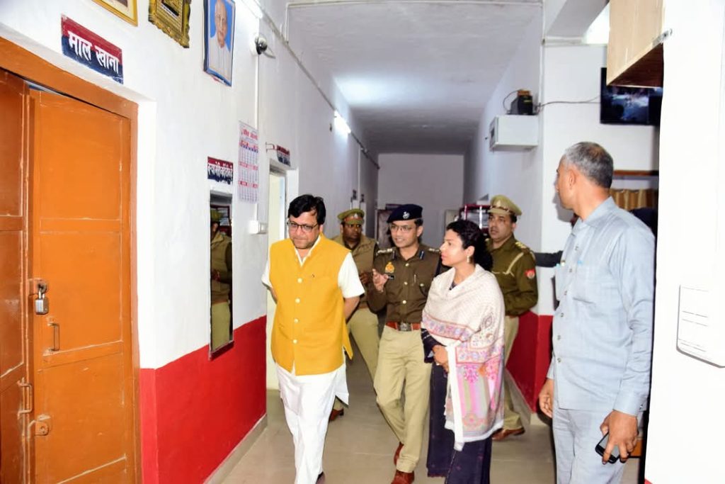 प्रभारी मंत्री नितिन अग्रवाल ने डीएम दुर्गा शक्ति नागपाल, एसपी संकल्प शर्मा, एएसपी नेपाल सिंह, एडीएम संजय कुमार सिंह के साथ सर्वप्रथम थाना खीरी का निरीक्षण किया। निरीक्षण के दौरान उन्होंने पूरे थाना परिसर, लॉकअप, मालखाने, मेंस, महिला सुरक्षा डेस्क तथा सीसीटीएनएस कार्य का निरीक्षण किया।