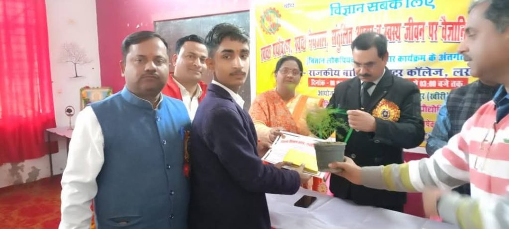 लखीमपुर खीरी में विज्ञान एवं प्रौद्योगिकी परिषद उत्तर प्रदेश के अंतर्गत संचालित जिला विज्ञान क्लब लखीमपुर खीरी के तत्वावधान में आज राजकीय बालिका इंटर कॉलेज , लखीमपुर में विज्ञान जागरूकता कार्यक्रम के अंतर्गत स्वच्छ पर्यावरण स्वच्छ पेयजल संतुलित आहार व स्वस्थ जीवन शैली पर जागरूकता कार्यक्रम का आयोजन हुआ । जिसमे यू पी बोर्ड , सी बी एस ई और आई सी एस ई के लगभग 15 माध्यमिक विद्यालयों के विद्यार्थियों ने मॉडल प्रदर्शनी व पोस्टर प्रदर्शनी में प्रतिभाग किया ।कार्यक्रम के मुख्य अतिथि कृषि वैज्ञानिक डॉ प्रदीप कुमार बिसेन ने कहा की पर्यावरण संरक्षण के लिए व्यवहारिक व सरल ज्ञान को अपनाना चाहिए साथ ही नित नवीन प्रयोगों के संदर्भ में जानकारी प्राप्त करते रहना चाहिए । मुख्य अतिथि द्वारा पोस्टर प्रदर्शनी का भी निरीक्षण किया गया । जागरूकता कार्यक्रम में विशिष्ट अतिथि डॉ विशाल द्विवेदी आचार्य युवराज दत्त महाविद्यालय , लखीमपुर रहे उन्होंने अपने उद्बोधन में कहा कि स्वस्थ जीवन शैली अपनाने के लिए मैडिटेशन की प्रैक्टिस और जंक फूड से दूरी बहुत जरूरी है । जागरूकता कार्यक्रम में पोस्टर प्रदर्शनी के विजेता निम्नवत हैं प्रथम शौर्य मिश्र, दीन दयाल उपाध्याय सरस्वती विद्या मंदिर , द्वितीय प्रतिभा वर्मा,सनातन धर्म बालिका तृतीय आदविक दीक्षित लखनऊ पब्लिक स्कूल, – सांत्वना मो फैज़ान इस्लामिया इंटर कॉलेज एवं बाला प्रसाद , धर्म सभा इंटर कॉलेज विज्ञान मॉडल प्रतियोगिता में प्रथम उत्कर्ष पटेल , चिल्ड्रन अकेडमी *द्वितीय अतीक अहमद , राजकीय इंटर कॉलेज *तृतीय* ऐश्वर्या अवस्थी , राजकीय बालिका इंटर कॉलेज, -व सांत्वना परिधि पंडित दीन दयाल स विद्या मंदिर व गौरव सिंह , गांधी विद्यालय इंटर कॉलेज । सभी विजयी प्रतिभागियों को पुरस्कार प्रमाणपत्र के साथ साथ औषधीय पौधे भी भेंट किये गए। जिला समन्वयक सुनील कुमार मिश्र ने बताया कि जनपद में स्वच्छ पर्यावरण व स्वस्थ जीवन शैली की जागरूकता हेतु इस कार्यक्रम का आयोजन जिलाधिकारी महोदया के नेतृत्व व जिला विद्यालय निरीक्षक के मार्गदर्शन में किया जा रहा है । इस कार्यक्रम की अध्यक्षता करते हुए विद्यालय प्रधानाचार्य डॉ शालिनी दुबे ने अपने उद्बोधन में संतुलित आहार के विषय मे विद्यार्थियों को बताया व जंक फूड से दूर रहने की हिदायत दी।मंच संचालन राजकीय कन्या इंटर कॉलेज की शैलजा मिश्रा ने किया। निर्णयक मंडल के सदस्य के रूप डॉ कलीम हुसैन व आशीष मोहन बाजपाई रहे । कार्यक्रम में सुनील प्रकाश वर्मा , गौरव बाजपेयी , निगहत परवीन , अजय लक्ष्मी , रेखा वर्मा , पूनम शर्मा शिवानी, लखीमपुर नगर के विद्यार्थी , अध्यापक , अभिभावक लगभग 250 लोग उपस्थित रहे । आभार सहित सुनील कुमार मिश्र समन्व