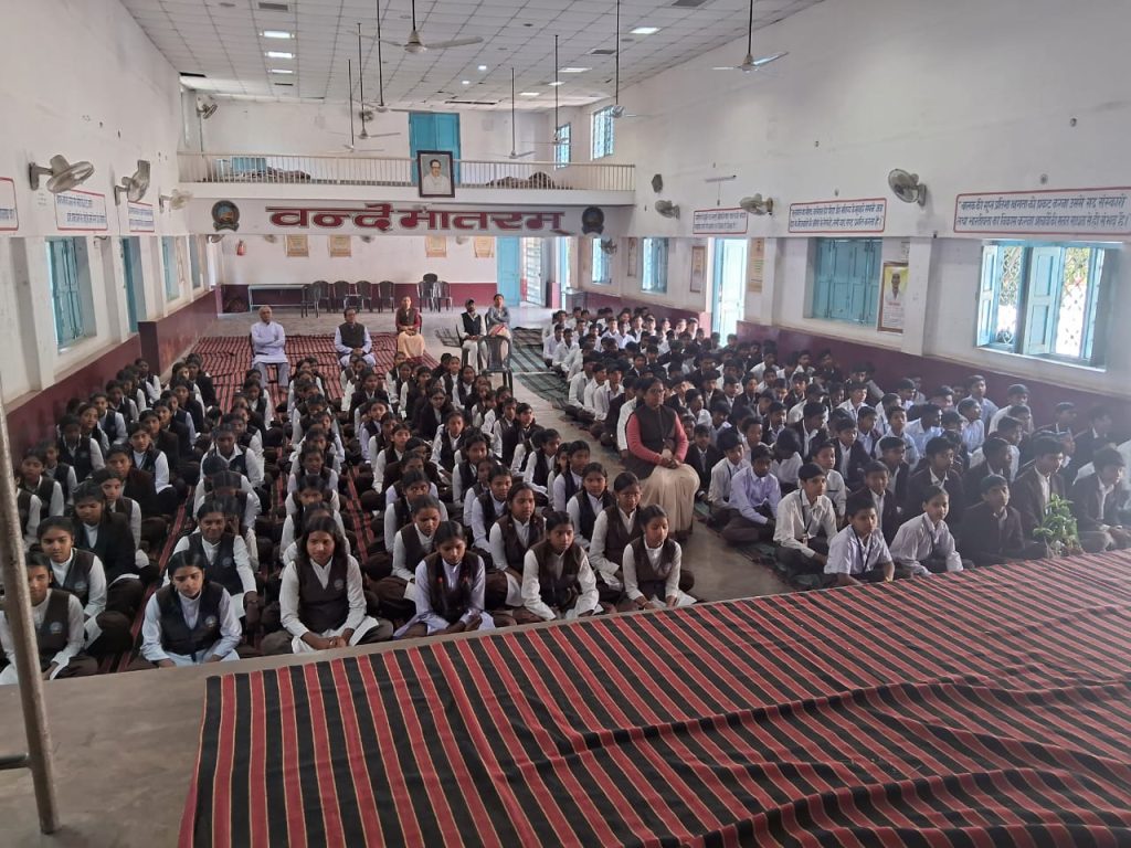 भारत के यशस्वी प्रधानमंत्री नरेंद्र मोदी जी ने परीक्षा पर चर्चा 2025 का कार्यक्रम आज प्रसारण हुआ । जिस कार्यक्रम को स्थानीय देवीगंज रोड सरस्वती शिशु मंदिर उ.मा वि. के सभागार में ऑडियो वीडियो के माध्यम से दिखाया गया।बच्चों को परीक्षा के तनाव को कम करने के लिए उन्होंने कई उपायों की चर्चा की। उन्होंने कहा जो विषय डराये ,पहले उसी से निपटें।असफलता को ही अपना गुरु बनाए। परीक्षा को उत्सव के रूप में लें। सकारात्मक सोच के साथ निरंतर विषय का स्वाध्याय करें तो निश्चय ही सफलता मिलेगी। आज के इस कार्यक्रम में विद्यालय के 680 छात्र -छात्राएं व35 आचार्य सहभागी हुए।सभी कार्यक्रम से काफी प्रेरित हुए।