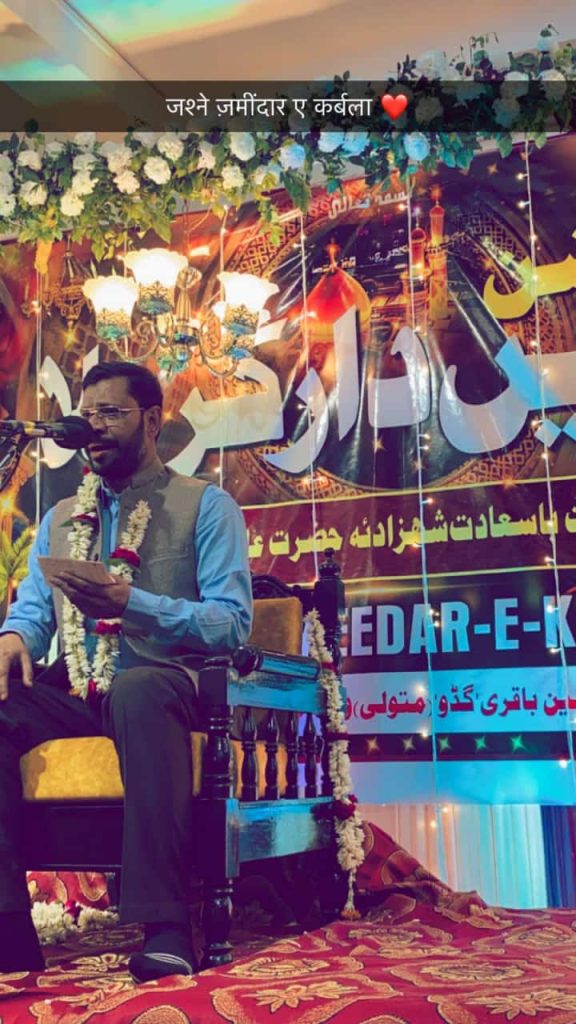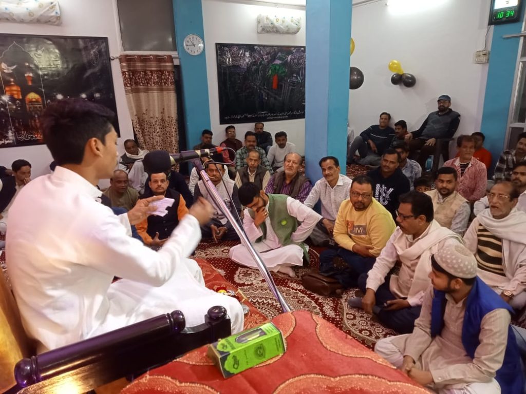 वाराणसी । इमाम हुसैन के बड़े बेटे हज़रत अली अकबर के यौमे विलादत पर वक़्फ़ इमामबाड़ा बी रज्जी साहिबा, नईसड़क में महफ़िल का आयोजन हुआ। इमामबाड़े के मुतवल्ली सैय्यद एजाज़ हुसैन जाफ़री (गुड्डू बाक़री) के संयोजक में आयोजित इस महफ़िल का आग़ाज़ ताहिर जवाद ने कलाम पाक की तिलावत के साथ किया। महफ़िल की निज़ामत कर रहे हसन वास्ती ने नाते पाक का नज़राना पेश किया। इसके बाद शहर भर के मशहूर ओ मारूफ़ शोअरा ने अपने अपने कलाम पेश किये जिनमें मौलाना ज़हीन हैदर दिलकश ग़ाज़ीपुरी, मौलाना इक़बाल ईमानी, मौलाना गुलज़ार मौलाई, मौलाना वसीम असग़र, अतश बनारसी, अंसार बनारसी, वफ़ा बुतुरबी, इकराम भीकपूरी, शराफत बनारसी, शाहआलम बनारसी, आशूर बनारसी, ज़ैदी बनारसी, नज़ाकत चंदौलवी समेत 32 शोअरा ने बारगाहे मौला में नज़राना ए अक़ीदत पेश किया। काफी संख्या में लोग मौजूद रहे देर रात तक जायरीन के लिए पानी और नाश्ता के लिए इंतजाम किए गया महफ़िल की अध्यक्षता मौलाना सैय्यद मुहम्मद अक़ील हुसैनी साहब ने की एवं मौलाना सैय्यद ज़मीरुल हसन रिज़वी साहब ने महफ़िल को ख़िताब किया व दुआख़्वानी के साथ आगामी एक साल के लिए महफ़िल को मुल्तवी किया। महफ़िल में शायरों ने अपने कलाम से ऐसा समां बांधा की देर रात तक महफ़िल में सुभान अल्लाह की गूंज रही। ज्ञात हो कि शाबान माह की 11 तारीख़ को इमाम हुसैन के बड़े बेटे हज़रत अली अकबर जिनको हम शबीहे पैग़म्बर भी कहा जाता है उनके जन्म दिवस पर इस महफ़िल का आयोजन होता चला आया है। अंतिम में इमामबाड़े के मुतवल्ली एजाज़ हुसैन जाफ़री ने महफ़िल में शरीक होने वाले शोअरा और मोमिनीन का शुक्रिया अदा किया।.