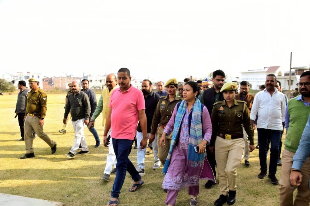 सर्वप्रथम डीएम-एसपी ने सीएम के प्रस्तावित कार्यक्रमों की तैयारियो की समीक्षा के उद्देश्य से पब्लिक इंटर कॉलेज के राजेंद्र गिरी स्टेडियम ग्राउंड में अफसरों की बैठक ली, संबंधित को जरूरी निर्देश दिए। उन्होंने राजेंद्र गिरी स्टेडियम में हेलीपेड और मैदान में लग रहे जर्मन हैंगर पंडाल की प्रगति देखी। पंडाल में डी ब्लॉक, मीडिया व्यू प्लेस, गणमान्य महानुभावो और आमजन के लिए सीटिंग प्लान, साउंड सिस्टम, सैफ हाउस निर्माण, वाहनों की पार्किंग एवं रूट प्लान व्यवस्था आदि मूलभूत, जरूरी बिंदुओं पर गहन समीक्षा कर जरूरी दिशा निर्देश दिए। उन्होंने पूरे कार्यक्रम को अफसरो संग नक्शे पर समझा और सभी मुकम्मल तैयारी के निर्देश दिए।