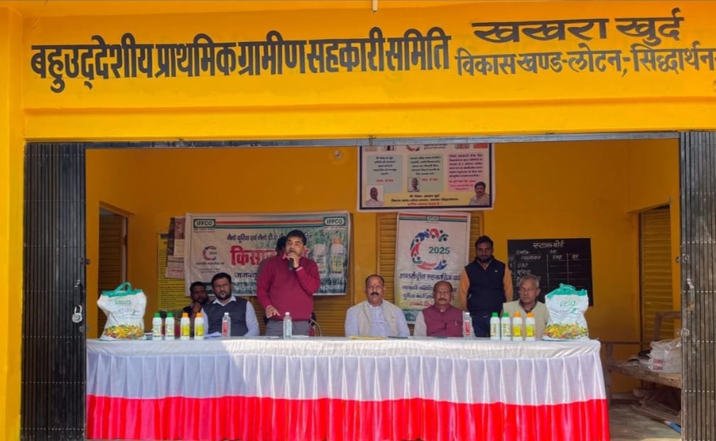 जिले के विकास खण्ड लोटन अन्तर्गत खखरा खुर्द समिति पर बुधवार को किसान सभा का आयोजन किया गया। किसान सभा में बी पैक्स खखरा खुर्द के अध्यक्ष लालजी गुप्ता, प्रधान संघ अध्यक्ष अरविन्द त्रिपाठी, एडीओ लोटन मो यूनुस, इफको एफ0ओ0 अरविन्द प्रताप, मो0 शमीम, समिति सचिव सूरज चौरसिया, श्रीनेत सिंह तथा 70 की संख्या में किसान उपस्थित रहें। क्षेत्रीय अधिकारी इफको अरविन्द प्रताप ने किसानों को बोरी वाले उर्वरक को कम कर नैनो उर्वरक प्रयोग करने की सलाह दी। इफको नैनो यूरिया प्लस, नैनो डीएपी सागरिका तरल एवं अन्य उत्पाद के प्रयोग विधि, महत्व, पावर स्प्रेयर के उपयोग के बारें में विस्तारपूर्वक जानकारी दी गयीं। कृषकों ने रुचि पूर्वक सुना और अपने सभी शंका का समाधान प्राप्त किया। स्प्रेयर मशीन आदि के बारें में बताया गया। एडीओ मो0 यूनुस नैनो डीएपी, सागरिका तरल का खेत में प्रयोग को बढ़ावा देने की सलाह दी। कार्यक्रम के अतिथि अरविन्द त्रिपाठी ने इसका प्रयोग करने की सलाह दी। समिति सचिव ने किसानों से उत्पादन बढ़ाने हेतु नैनो उर्वरक और सागरिका का प्रयोग करने के सलाह देकर सभी का धन्यवाद किया।