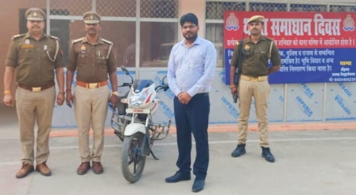 पुलिस ने धारा 14(1) यू0पी0 गैंगस्टर एक्ट के तहत के एक बाइक को किया कुर्क