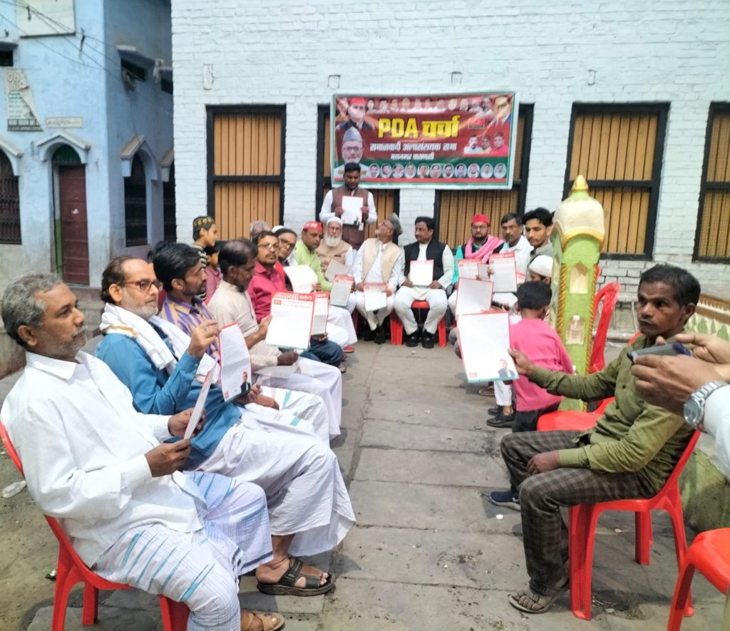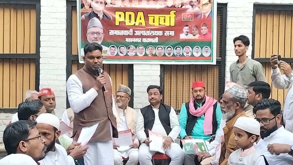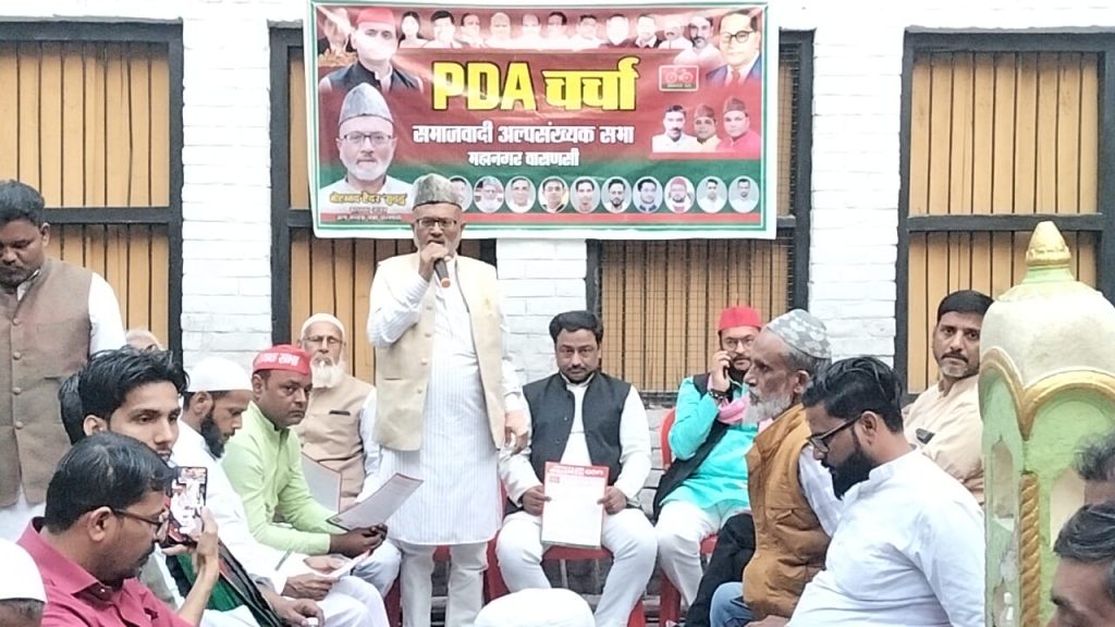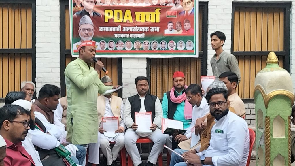 आज मोहम्मद हैदर गुड्डू महानगर अध्यक्ष अल्पसंख्यक सभा वाराणसी के नेतृत्व मोहम्मद अजफर गुड्डू मास्टर साहब के संयोजन में दक्षिणी विधानसभा के अन्तर्गत जुमा मस्जिद सलेमपुरा (गुड्डू मास्टर साहब के आवास के पास) PDA पर चर्चा हुई। और निचले स्तर के लोगो को जोड़ने के लिए साझा किया