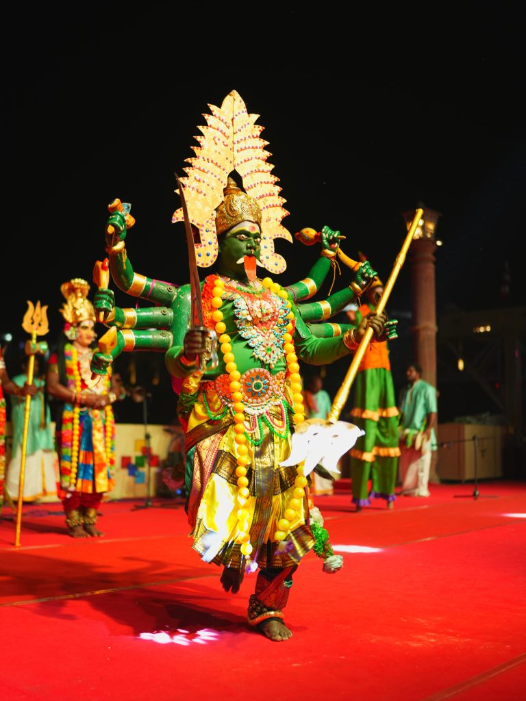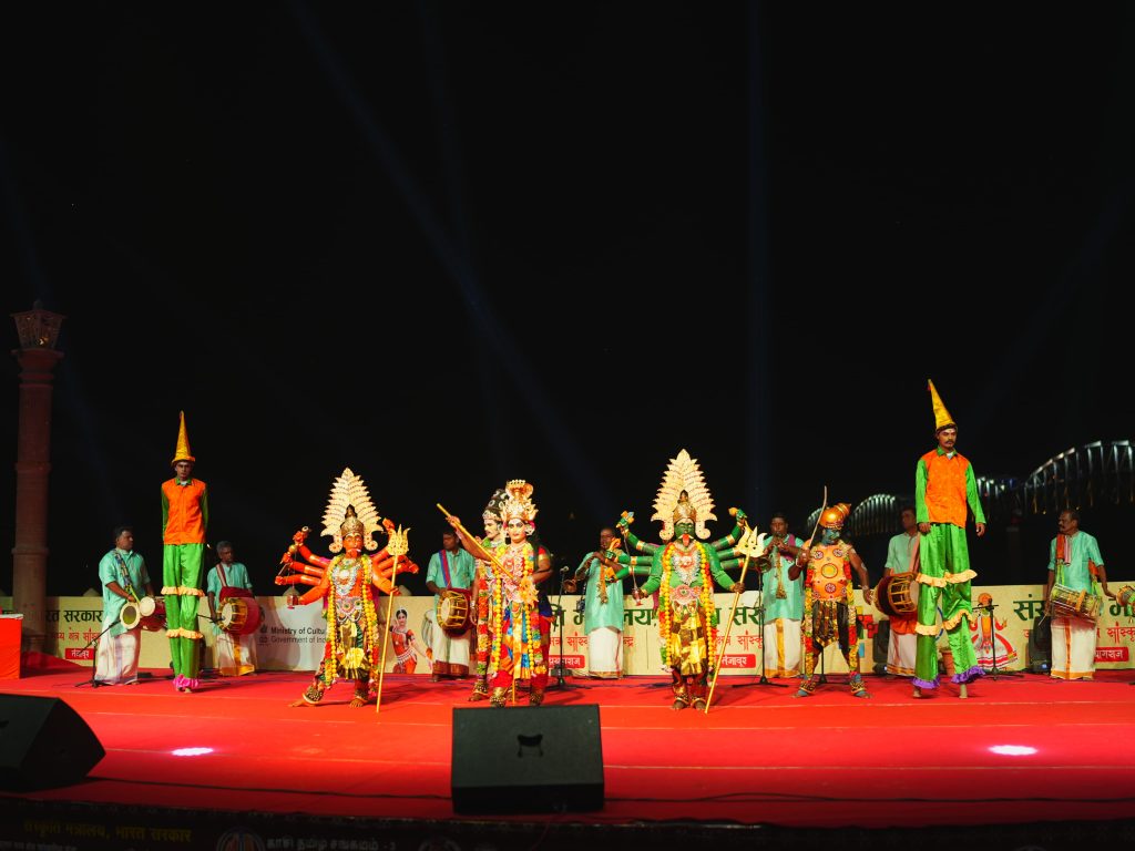 सांस्कृतिक संध्या में तमिलनाडु के विभिन्न पारंपरिक नृत्यों की आकर्षक प्रस्तुतियां देखने को मिलीं। थपत्तम नृत्य ने अपनी ऊर्जावान प्रस्तुति से दर्शकों को मंत्रमुग्ध कर दिया। यह नृत्य विशेष रूप से ढोल (थप्पू) के माध्यम से प्रस्तुत किया जाता है और तमिलनाडु के लोक उत्सवों तथा अनुष्ठानों का अभिन्न अंग है। इसके बाद कोल्लाटम (छड़ी नृत्य) की अद्भुत प्रस्तुति हुई, जिसमें नर्तकों ने छड़ियों के तालमेल के साथ नृत्य कर एक लयबद्ध समरसता का प्रदर्शन किया। यह नृत्य तमिलनाडु की प्राचीन सांस्कृतिक विरासत का प्रतीक है और समूह समन्वय की उत्कृष्ट मिसाल पेश करता है। सांस्कृतिक संध्या का प्रमुख आकर्षण कंबरामायण पर आधारित नाट्य मंचन रहा, जिसमें संत कंबन द्वारा रचित तमिल रामायण के प्रसंगों को सजीव अभिनय और नृत्य के माध्यम से प्रस्तुत किया गया। इस नाट्य मंचन ने दर्शकों को तमिल साहित्य की समृद्धि और उसकी गहरी सांस्कृतिक जड़ों से परिचित कराया।
