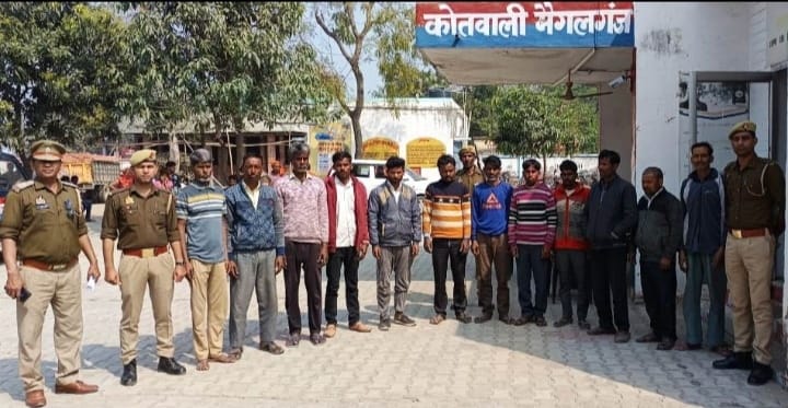 मैगलगंज खीरी, 23 फरवरी 2025: पुलिस अधीक्षक महोदय खीरी, संकल्प शर्मा के निर्देशन व अपर पुलिस अधीक्षक खीरी के निकट पर्यवेक्षण में सम्पूर्ण जनपद में अपराध की रोकथाम व वांछित/वारंटी अभियुक्तों की गिरफ्तारी हेतु चलाए जा रहे अभियान के अंतर्गत थाना मैगलगंज पुलिस टीम द्वारा आज दिनांक 23.02.2025 को 12 नफर वारण्टी अभियुक्तों 01.हरिओम पुत्र कन्धई उम्र 34 वर्ष निवासी ग्राम परसेहरा थाना मैगलगंज जनपद खीरी सम्बन्धित अ0सं0 165/2018 धारा 498ए/304बी भा0द0वि0 व ¾ डीपी एक्ट थाना मैगलगंज खीरी 02.दिनेश पुत्र राजकुमार उम्र करीब 43 वर्ष नि0ग्राम रावनखुर्द थाना मैगलगजं जनपद खीरी सम्बन्धित मु0नं0 808/2022 अ0सं0 26/2022 धारा 4/25 आर्म्स एक्ट थाना मैगलगंज खीरी 03.विरेन्द्र पुत्र विश्वनाथ उम्र करीब 42 वर्ष नि0ग्राम झाला थाना मैगलगजं जनपद खीरी सम्बन्धित मु0नं0 568/20 अ0सं0 26/20 धारा 452/427/323/504/506 आईपीसी थाना मैगलगंज खीरी 04.श्रीकृष्ण पुत्र मैकू उम्र 33 वर्ष निवासी ग्राम चपरतला थाना मैगलगंज जनपद खीरी सम्बन्धित मु0सं0 4248/2024 धारा 323/504/506/392 आईपीसी थाना मैगलगंज खीरी 05.बालकराम उर्फ कल्लू पुत्र रामेश्वर उम्र 32 वर्ष निवासी ग्राम निजामपुर थाना मैगलगजं जनपद खीरी सम्बन्धित मु0नं0 99/19 व अ0सं0 486/18 धारा 452/376/506 आईपीसी थाना मैगलगंज खीरी कोर्ट श्रीमान षष्ट्म अपर जिला एवं सत्र न्यायाधीश लखीमपुर खीरी 06.छोटेलाल पुत्र सीताराम उम्र 32 वर्ष निवासी ग्राम छत्तापुर थाना मैगलगंज जनपद खीरी सम्बन्धित मु0नं0 8829/23 धारा 354/323/504/506 आईपीसी थाना मैगलगंज खीरी कोर्ट न्यायालय श्रीमान न्यायिक मजिस्रे23ट मोहम्मदी खीरी 07.राजेश पुत्र सीताराम उम्र 38 वर्ष निवासी ग्राम छत्तापुर थाना मैगलगजं जनपद खीरी मु0नं0 8829/23 धारा 354/323/504/506 आईपीसी थाना मैगलगजं जनपद खीरी कोर्ट न्यायालय न्यायिक मजिस्ट्रेट मोहम्मदी खीरी 08. बृजेश कुमार पुत्र सीताराम उम्र 28 वर्ष नि0ग्राम छत्तापुर थाना मैगलगजं जनपद खीरी सम्बन्धित मु0नं0 8829/23 धारा 323/504 आईपीसी थाना मैगलगंज खीरी कोर्ट न्यायालय न्यायिक मजिस्ट्रेट मोहम्मदी खीरी 09.विट्टन उर्फ रूपराम पुत्र चरनजू उम्र 40 वर्ष निवासी ग्राम ढाका थाना मैगलगंज जनपद खीरी सम्बन्धित मु0सं0 476/18 अ0सं0 21-18 धारा 447/352/504/506 आईपीसी थाना मैगलगंज खीरी न्यायालय न्यायिक मजिस्ट्रेट, मोहम्मदी खीरी 10.माखन पुत्र रामचरन पासी उम्र 32 वर्ष निवासी ग्राम श्रीपालपुर थाना मैगलगजं जनपद खीरी सम्बन्धित मु0नं0 995/20 व अ0सं0 337/20 धारा 457/380 आईपीसी थाना मैगलगंज खीरी न्यायालय न्यायिक मजिस्ट्रेट, मोहम्मदी खीरी 11.रफीक पुत्र मो0नबी उम्र 45 वर्ष निवासी ग्राम नईबस्ती खखरा थाना मैगलगंज जनपद खीरी सम्बन्धित मु0सं0 5015/24 अ0सं0 222/23 धारा 323/504/506 आईपीसी थाना मैगलगंज खीरी न्यायालय न्यायिक मजिस्ट्रेट, मोहम्मदी खीरी तारीख पेशी 07.03.2025 ,12.राकेश पुत्र सूर्यनरायण उम्र 50 वर्ष निवासी ग्राम ज