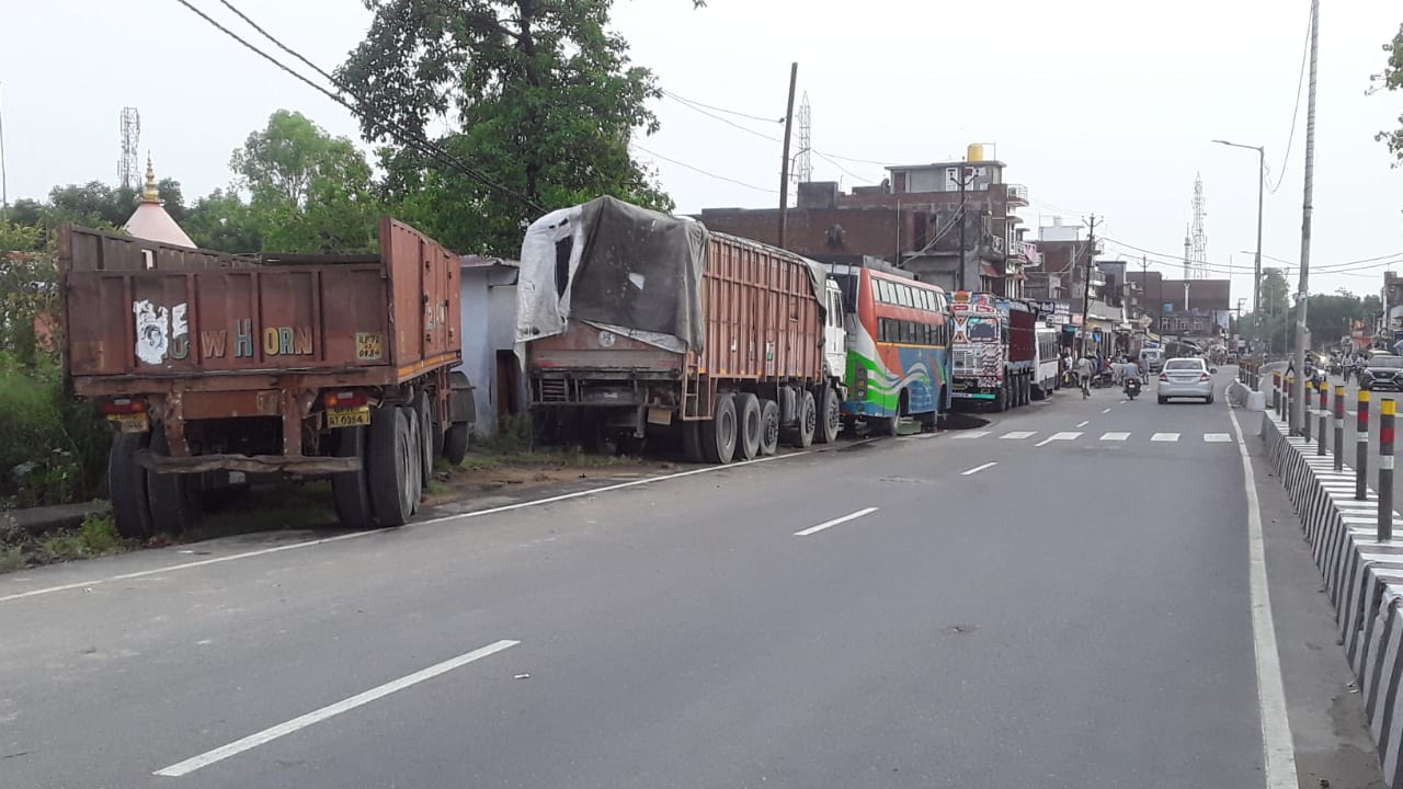 जनपद लखीमपुर खीरी के एआरटी विभाग के जिम्मेदार अधिकारियों की लपरवाही के चलते ओयल पुलिस चौकी के मुख्य गेट के बाहर फोर लेन पर खङे किये जाते है भारी वाहन हो सकता है किसी भी समय बङा हादसा