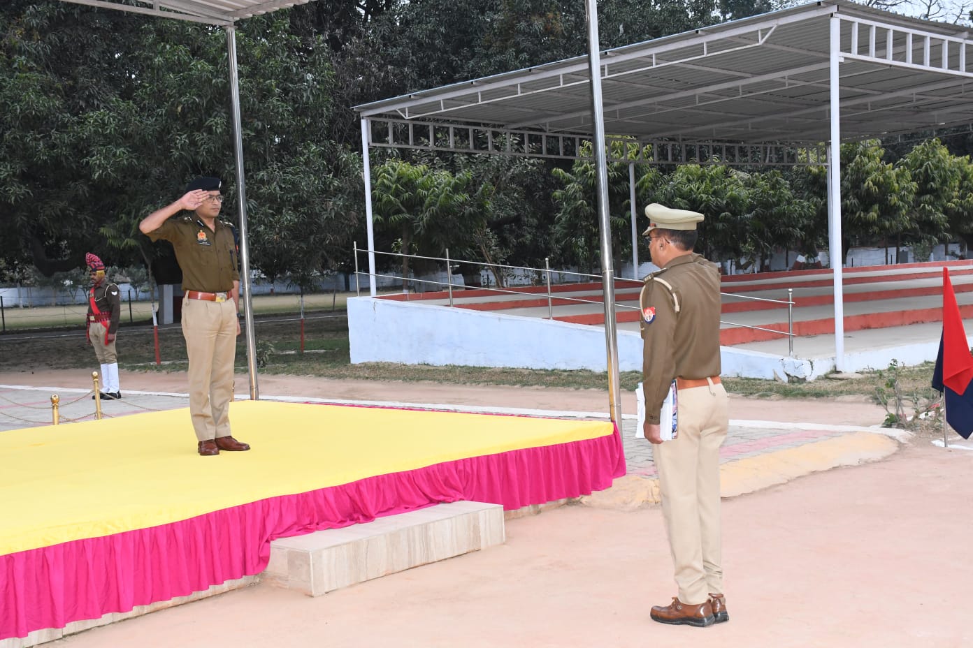 एसपी खीरी संकल्प शर्मा द्वारा शुक्रवार की साप्ताहिक परेड का निरीक्षण किया गया। इस दौरान पुलिस बल के शारीरिक व मानसिक रूप से फिट रहने के लिए समस्त पुलिसकर्मियों से दौड़ लगवायी गयी एवं अनुशासन व एकरूपता बनाए रखने के लिए ड्रिल करवाया गया। परेड में पुलिस लाइन का पुलिस बल तथा विभिन्न कार्यालयों में नियुक्त समस्त पुलिसकर्मी सम्मिलित हुए। निरीक्षण के पश्चात अधीक्षक द्वारा परेड में शामिल समस्त पुलिसकर्मियों को साफ-सुथरी एवं स्वच्छ वर्दी धारण करने तथा नियमानुसार टर्नआउट मेंटेन करने हेतु निर्देशित किया गया।