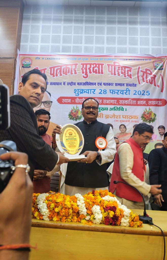 लखनऊ।सहकारिता भवनलखनऊ के सहकारिता भवन में आज राष्ट्रीय पत्रकार सुरक्षा परिषद का राष्ट्रीय पत्रकार अधिवेशन धूमधाम से सम्पन्न हुआ। इस समारोह के मुख्य अतिथि उत्तर प्रदेश के उप मुख्यमंत्री बृजेश पाठक जी उपस्थित रहे। कार्यक्रम में कारागार मंत्री सुरेश राही, उच्च शिक्षा मंत्री रजनी तिवारी, कैबिनेट मंत्री राकेश सचान और राज्य मंत्री रविंद्र जायसवाल भी शामिल हुए।