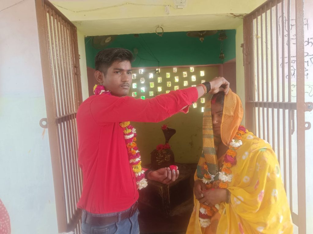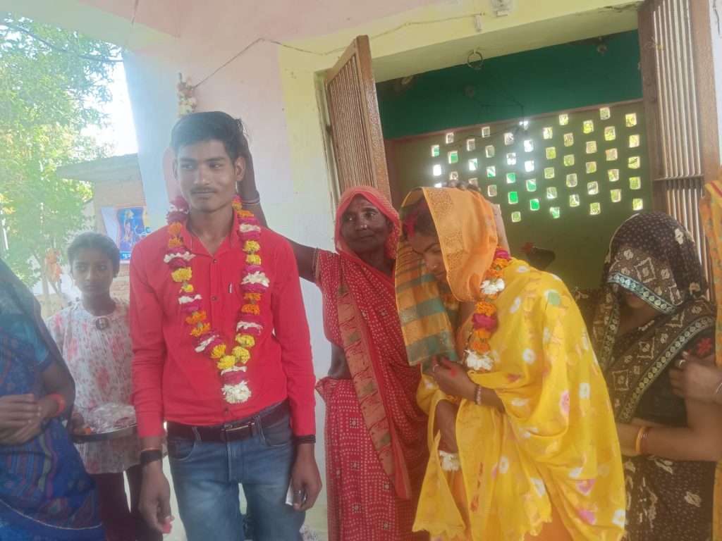 – गुजरात के अहमदाबाद में दोनों के बीच हुए थे संबंध अयाना। थाना क्षेत्र के एक गांव में परिजन के रिश्ता लेकर आई प्रेमिका को प्रेमी के परिजन ने शादी करवाने से इंकार कर दिया। इसपर प्रेमिका ने पुलिस को सूचना दे दी। मौके पर पहुंची पुलिस ने दोनों को राजी करवाकर पास के ही शिव मंदिर में दोनों का विवाह करवाया है। अयाना थाना क्षेत्र के एक गांव निवासी गुजरात के अहमदाबाद में प्राइवेट नौकरी करता है। सात माह पहले वहीं पर उसके संबंध औरैया कोतवाली क्षेत्र के एक गांव निवासी युवती के साथ हो गए। शुक्रवार को युवती परिजन के साथ रिश्ता लेकर युवक के घर पहुंच गई। प्रेमी के परिजन द्वारा शादी करवाने से इंकार कर देने पर दोनों पक्षों के बीच में हाई वोल्टेज ड्रामा चला। इसी बीच प्रेमिका ने 112 पर फोन कर पुलिस बुलवा ली। मौके पर पहुंची पुलिस ने दोनों पक्षों के लोगों को समझा कर शादी के लिए रजामंद किया। इसके बाद पुलिस के सामने दोनों ने पास के शिव मंदिर में विवाह कर लिया। थाना प्रभारी विनोद कुमार ने बताया कि प्रेमी-प्रेमिका बालिग होने के चलते अपनी मर्जी से शादी कर सकते हैं। दोनों के परिजन के राजी हो जाने पर उनका विवाह करवा दिया गया है।
