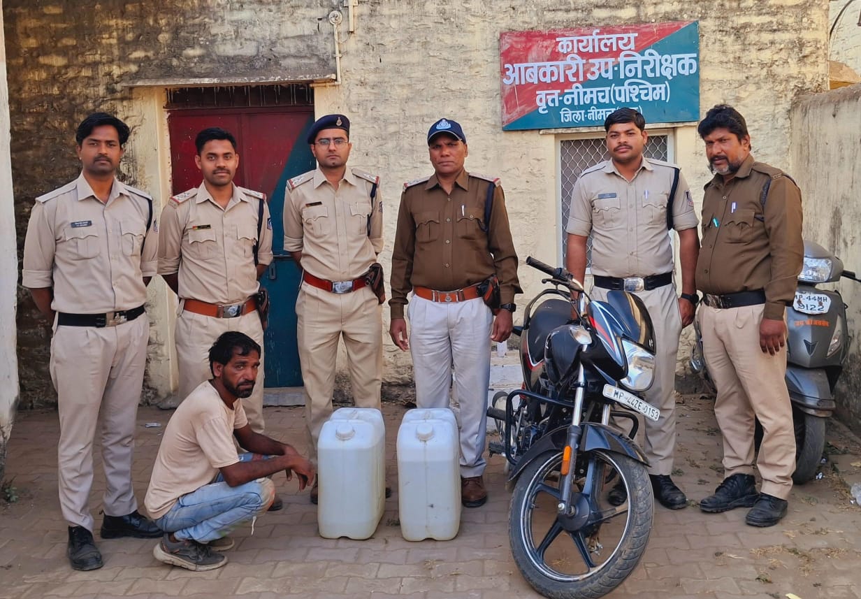 आज दिनांक 01/03/2025 को कलेक्टर महोदय श्री हिमांशु चंद्रा के निर्देशन एवं जिला आबकारी अधिकारी श्री बी.एल. सिंगाड़ा के मार्गदर्शन में आबकारी उपनिरीक्षक संजय कुमार कवारे के नेतृत्व में आबकारी दल ने वृत्त नीमच पूर्व में गिरड़ौदा मालाखेड़ा रोड पर मुखबिर की सूचना के आधार पर आरोपी प्रहलाद पिता बंशीलाल बछड़ा निवासी ग्राम चड़ोली को हीरो कंपनी पैशन प्लस मोटरसाइकिल क्रमांक MP44GE0153 से 63 लीटर महुआ हाथ भट्टी मदिरा परिवहन करते हुए मध्य प्रदेश आबकारी अधिनियम की विभिन्न धारा 34 (2) , 46 में गिरफ्तार कर आरोपी को जिला जेल भेजा गया।