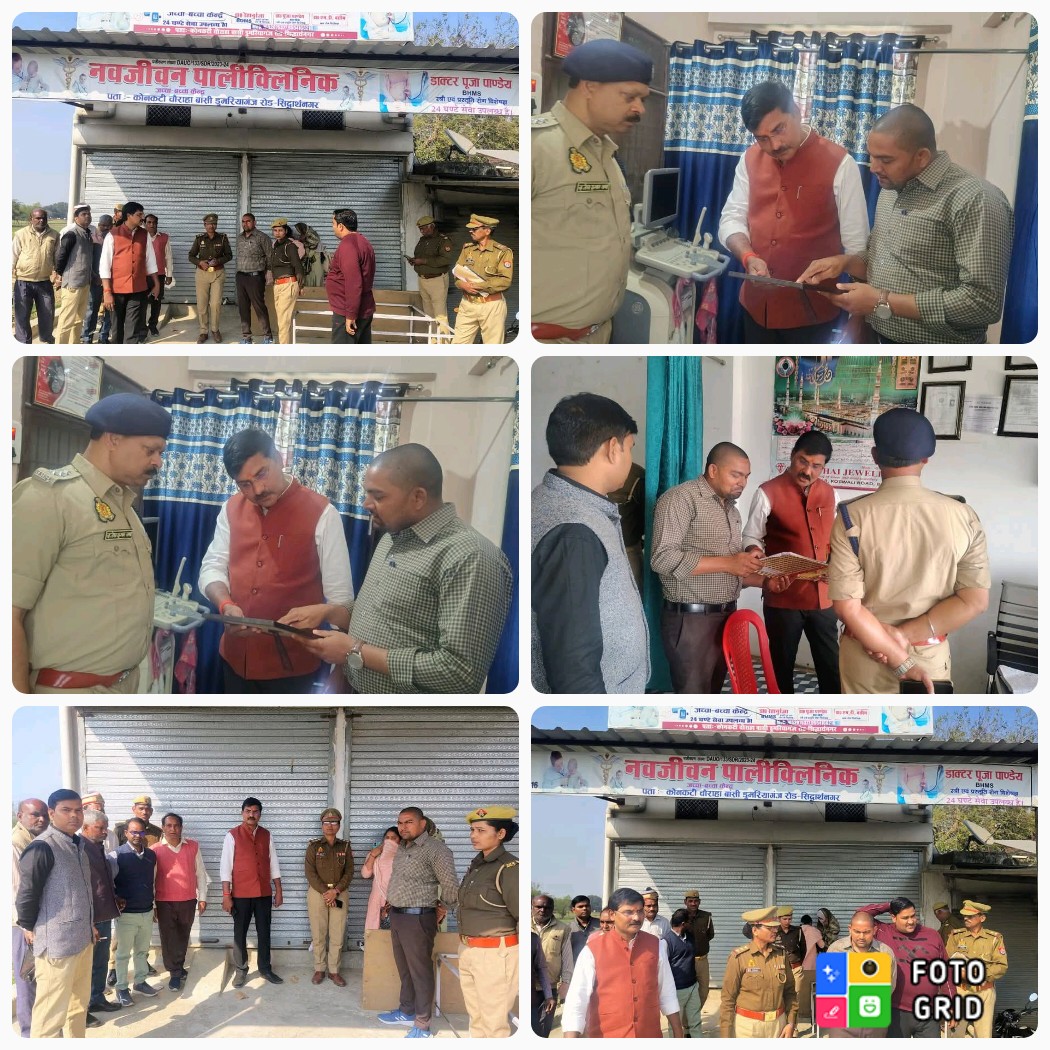 तहसील डुमरियागंज के उपजिलाधिकारी, क्षेत्राधिकारी, सीएचसी बेवां अधीक्षक सहित थानाध्यक्ष ने गुरुवार को क्षेत्र में औचक निरीक्षण किया गया, जिसमें अलहयात हॉस्पिटल का निरीक्षण किया गया है। जिसमें हॉस्पिटल खुला पाया गया, लेकिन कोई डॉक्टर उपलब्ध नहीं थे। फार्मेसी खुला था, जिसमें दवा वितरण किया जा रहा रहा था। वहीं नवजीवन पॉली क्लीनिक कोनकटी डुमरियागंज को सील किया गया। मौके पर हॉस्पिटल खुला पाया गया और दो स्टाफ उपस्थिति थे। डॉक्टर नहीं मिले और न ही कोई हॉस्पिटल सम्बन्धित डॉक्यूमेन्ट नहीं मिले, जिसके कारण उक्त हास्पिटल को सील कर दिया गया। निरीक्षण के दौरान आर0एस0 हॉस्पिटल, इकरा आई हॉस्पिटल व