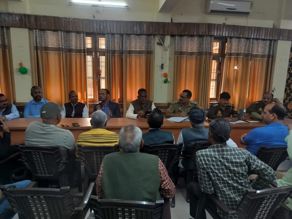मोहम्मदी खीरी 14 मार्च को नगर मे निकाली जाने बाली रगों की धमार और उसी दिन शुक्रवार की नमाज को देखते हुऐ उपजिलाधिकारी सभागार मे विधायक लोकेंद्र प्रताप सिह की अध्यक्षता में बैठक हुई,जिसमे आपसी भाईचारे की मिसाल देखने को मिली जिसमे घमार के समय रास्ते मे आने बाली नगर की तीन मस्जिदो मे शुक्रवार की नमाज को एक घण्ट आगे बढाते हुऐ नमाज अदा की जाऐगी,विधायक लोकेंद्र सिह ने कहा कि एक बार फिर दोनो संप्रदायों के प्रमुख व्यक्तियों के साथ-साथ धमाल के संयोजकों और उनकी टीम के साथ एक बार फिर बैठक करेंगे,हमारा मोहम्मदी भाई चारे की मिसाल रहा है इसे हर कीमत पर बरकरार रखना है, जिसमे सभी की जिम्मेदारी है, विधायक लोकेन्द्र प्रताप सिंह ने कहा डीजे पर ऐसे गाने प्रतिबंधित किए जाएंगे जिस किसी की भावना को ठेस पहुंचे, पेसे इमाम असजद सिद्दीकी और शिया कमेटी के अध्यक्ष अब्बास नकवी ने संयुक्त रूप से तीन मस्जिदो मे नमाज के समय बढाने की बात कही,तथा ऐसी टीम बनाई जाऐ जो असमाजिक तत्वों पर नजर रखे, शिवम राठौड़ ने एक कमेटी गठित करने की बात कही जो असमाजिक तत्वों पर नजर रखे,पहले घमार के सयोजक अतुल रस्तोगी ने सभी से आपसी भाईचारे को बनाऐ रखने की अपील की,तथा पालीथीन, और गुब्बारे पूर्ण रूप से प्रतिबंधित रहेंगे किसी की मकान पर रंग नहीं डाला जाएगा, इस बैठक मे उपजिलाधिकारी अवनीश कुमार ,पुलिस उपाध्यक्ष अरूण कुमार सिह, कोतवाल इंद्रजीत सिंह, कस्बा इंचार्ज बाबूराम, डाक्टर सुभाष गुप्ता,नगर अध्यक्ष मनोज गुप्ता, पूर्व नगर अध्यक्ष सौरभ गुप्ता ,शुशील वर्मा आशीष त्रिवेदी, अर्जुन राठौर ,दिनेश सिह सोमबशी सहित अन्य घमार के सदस्य मौजूद रहे
