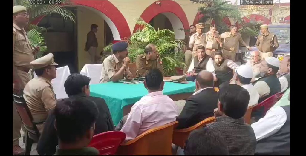 लखीमपुर खीरी के लखीमपुर सदर क्षेत्राधिकारी रमेश कुमार तिवारी के कुशल मार्गदर्शन में प्रभारी निरीक्षक कोतवाली लखीमपुर सदर हेमन्त राय के नेतृत्व में आयोजित हुई पीस कमेटी की बैठक। जिसमे आगामी होली व ईद के त्यौहार के द्रष्टिगत पीस कमेटी के दौरान आये हुये सभी धर्मो के धर्माचार्य, धर्मगुरू, मौलाना, ग्राम प्रधान, सभासद, ग्राम प्रधान, वीडीसी मेन्बरो व क्षेत्र के गणमान्य नागरिको ओ संबोधित करते हुये अपर पुलिस अधीक्षक नेपाल सिंह ने बताया कि आगामी त्यौहार आपसी भाई चारे व मेल मिलाप से त्यौहार मनाये। पीस कमेटी की बैठक में आए हुए क्षेत्र के संभ्रांत लोगों से संवाद स्थापित करके आने वाले होली के त्यौहार और वर्तमान में चल रहे रमजान शरीफ के पाक महीने में आपसी भाई चारे के साथ मनाए त्यौहार। इस हिदायत के साथ चेतावनी भरे लहजे में होली दहेन एवं रमजान के मौके पर सख्त निर्देश दिए कि होली दहेन एवं रमजान तक शान्त पूर्ण माहौल में त्योहार को निपटाएं। और अराजक तत्वों पर पुलिस पैनी नज़र रखेगी अगर किसी ने भी हुडदंग करने की कोशिश तो हो कठोर कार्यवाही की जाएगी। और साथ में यह भी कहा गया की सभी लोगो से कहना है कि होली का त्योहार पहले होने के चलते सभी मुस्लिम भाइयो से निवेदन है कि यदि किसी हिन्दू भाई से धोखे से उपर कोई रंग यदि डाल दे तो