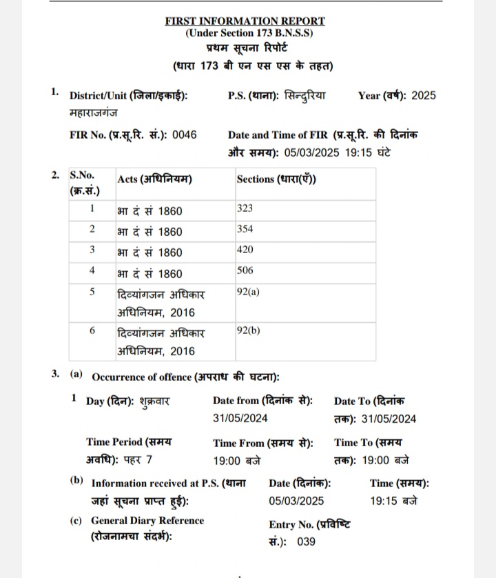 जब न्याय नहीं मिला, तो शिकायतकर्ता ने न्यायालय में TOP156 (3) के तहत आवेदन दिया। इसके बाद न्यायलय के आदेश पर थाना सिंदुरिया में एफआईआर दर्ज की गई।