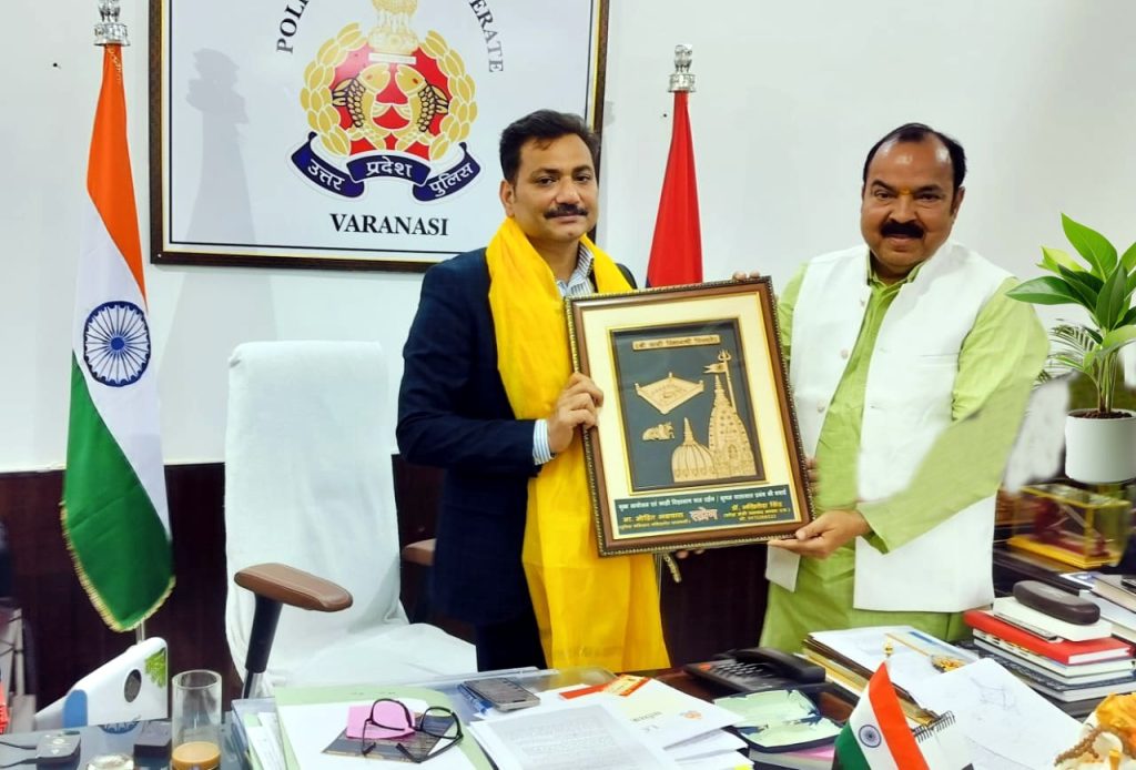 वाराणसी, व्यापारियों का एक प्रतिनिधि मण्डल प्रदेश मंत्री व्यापार मंडल उ प्र डॉ अखिलेश सिंह के नेतृत्व में पुलिस कमिश्नर मोहित अग्रवाल से मिल कर, गत माह कुम्भ आयोजन, काशी विश्वनाथ धाम दर्शन, सुगम यातायात प्रबंध लिए अंग वस्त्रम एवं स्मृति चिन्ह देकर सम्मानित किया एवं बधाई दी।प्रतिनिधि मण्डल में मुख्य रूप से डॉ अखिलेश सिंह प्रदेश मंत्री, प्रदीप राय, संजय राय, अरविन्द विश्वकर्मा, पवन सिंह, अमित राय, राहुल प्रकाश,जय प्रकाश सेठ, अमित कपूर आदि लोग शामिल थे।