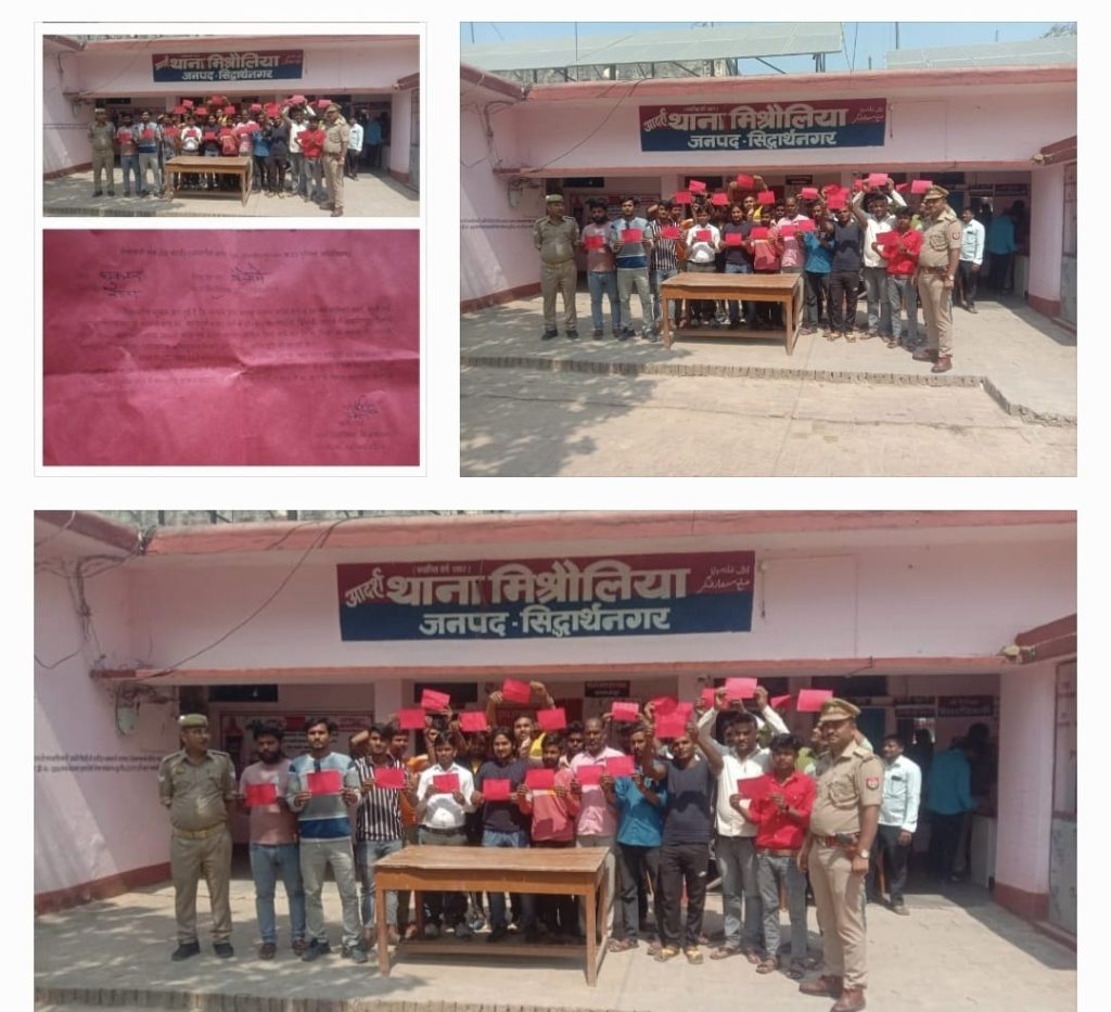 जिलाधिकारी सिद्धार्थनगर डा0 राजा गणपति आर0 व पुलिस अधीक्षक सिद्धार्थनगर डा0 अभिषेक महाजन के आदेश के क्रम में सिध्दार्थ अपर पुलिस अधीक्षक सिध्दार्थ नगर के निर्देशन में व क्षेत्राधिकारी इटवा के पर्यवेक्षण में थानाध्यक्ष मिश्रौलिया हरिओम कुशवाहा एवं चेतिया चौकी प्रभारी ने
