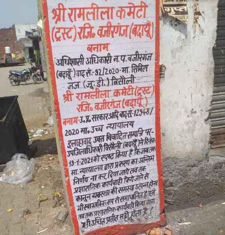 कब्जा धारकों ने एसडीएम कोर्ट में मुकद्दमा लंबित होने की सूचना दीवार पर अंकित की