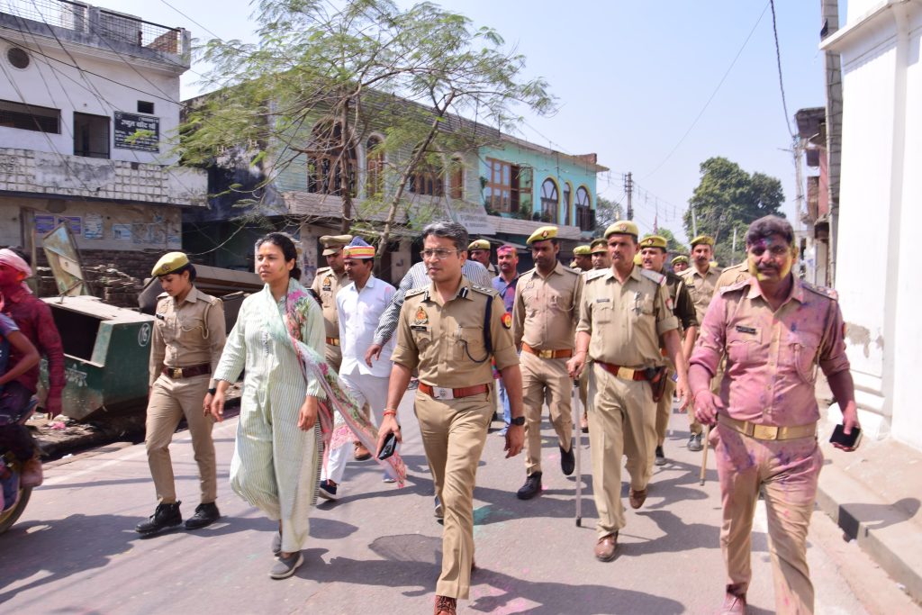 लखीमपुर खीरी 14 मार्च होली और रमजान में जुमे की नमाज एक ही दिन पड़ने के मद्देनजर जिला प्रशासन ने शांति और सुरक्षा व्यवस्था को चाक चौबंद रखा होली का पव ओर जुमे की नमाज को सकुशल सम्पन्न करने के उद्देश से सुबह से ही पुलिस प्रशासन पूरी तरह अलर्ट और सड़कों पर मुस्तैद दिखी ।डीएम दुर्गा शक्ति नागपाल ओर एसपी संकल्प शर्मा स्वयं सड़कों पर निकले और होली मना रहे लोगों को शुभकामनाएं दी ।