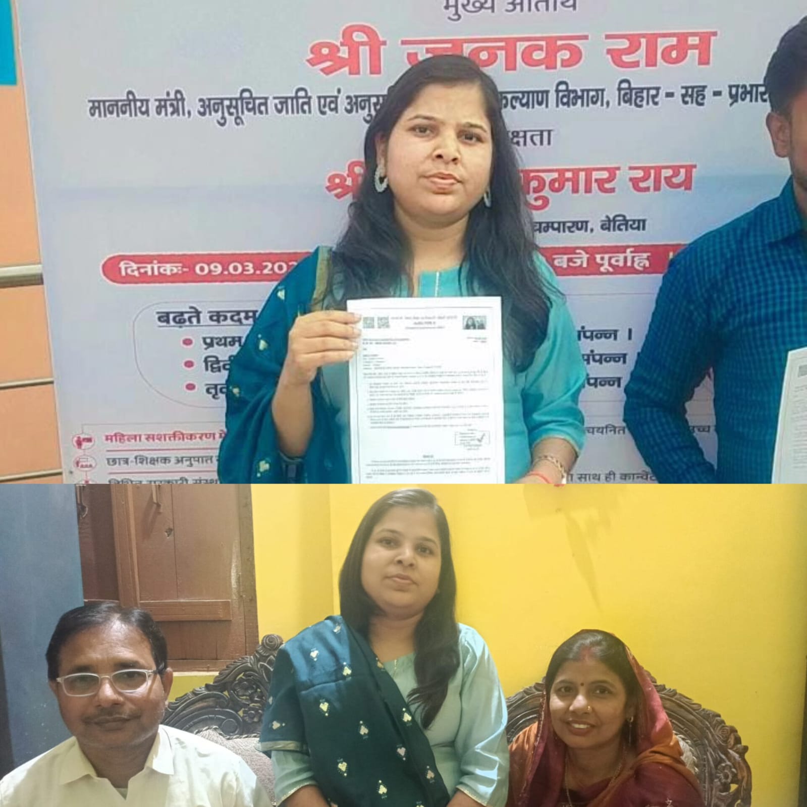 महराजगंज:निचलौल स्थित सरस्वती देवी महाविद्यालय निचलौल के प्राचार्य डा सुनील पांडेय ने अर्किता पांडेय s/o स्वर्गीय उमेश पांडेय रुदलापुर निवासी को BPSC बिहार लोक सेवा आयोग से अध्यापिका पद पर चयनित होने की बधाई दीं एवं मिष्ठान खिलाकर उनका अभिनंदन किया तथा उनके उज्जवल भविष्य की कमाना की।