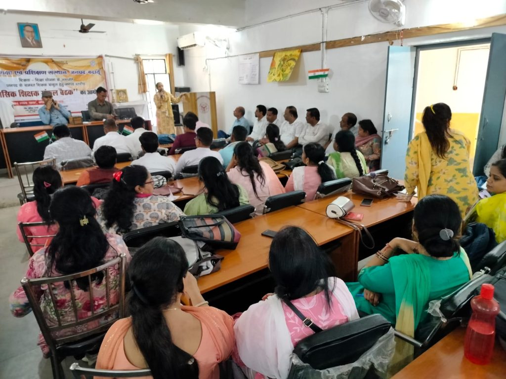 बदायूँ।जिला शिक्षा एवं प्रशिक्षण संस्थान, जनपद- बदायूं शिक्षक- शिक्षा योजना के अंतर्गत जनपद के समस्त शिक्षक संकुल हेतु जनपद स्तरीय “त्रैमासिक शिक्षक संकुल बैठक” का हुआ आयोजन, जिसमें जनपद बदायूं के 16 विकास क्षेत्र के 137 न्याय पंचायत के 685 शिक्षक संकुल सहित 80 एआरपी ने प्रतिभाग किया।