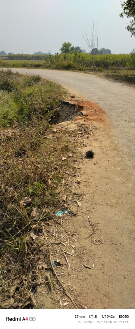 मितौली खीरी, 23 मार्च 2025: टूटी सड़क किसी खतरनाक साबित हो रही है। आपको बता दें कि मितौली तहसील के कस्ता से दानपुर लिंकरोड में डलुआपुर गाँव के निकट रोड के साइड से कटान हो गया था जिसको आज करीब 15 दिन बीत गए हैं लेकिन फिर भी अभी तक किसी का ध्यान इस तरफ़ नहीं गया है। चूंकि इस सड़क पर दिन रात का आवागमन रहता है और मोड़ पर होने के कारण किसी अप्रिय घटना की आशंका है।