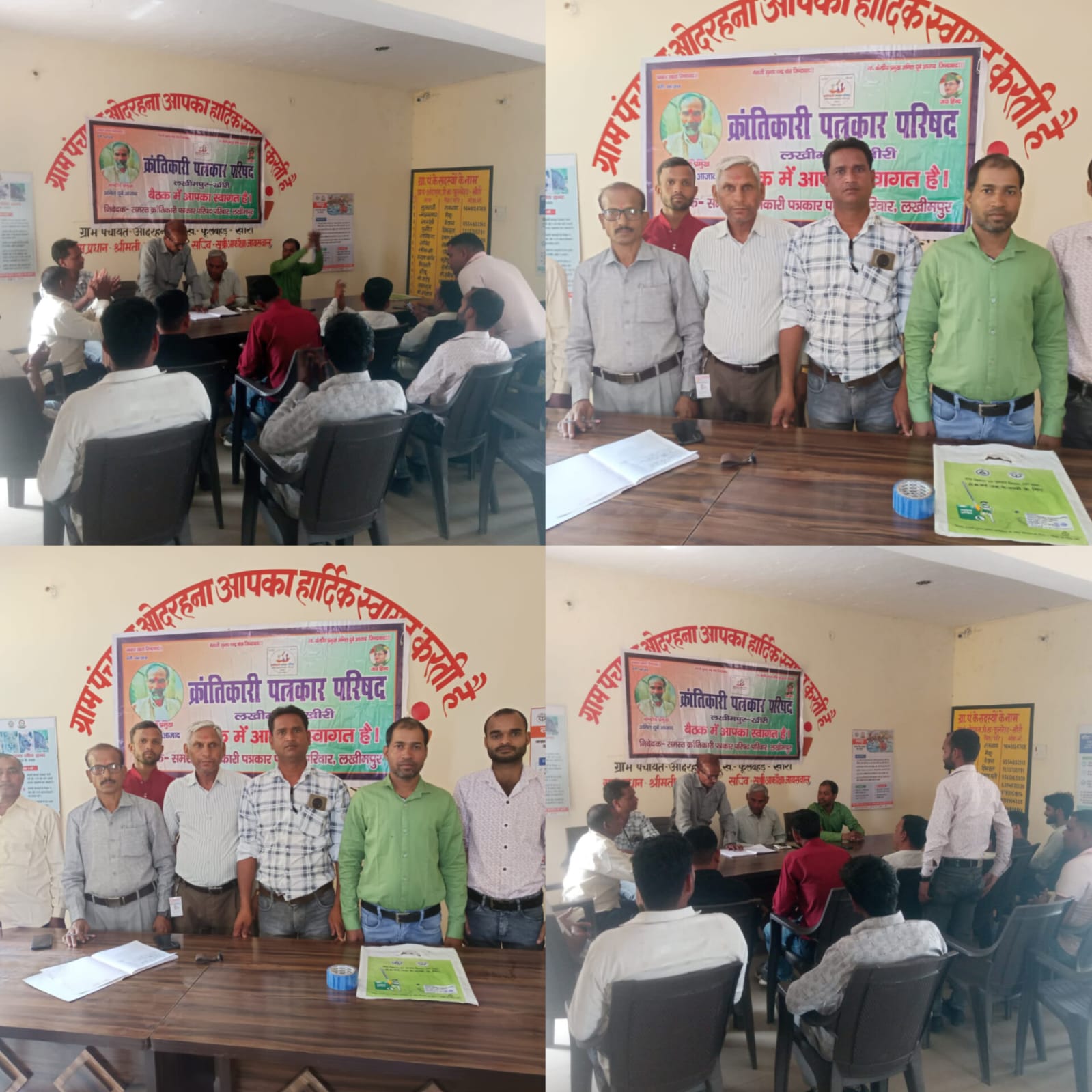 लखीमपुर खीरी। आज क्रांतिकारी पत्रकार परिषद की तीसरी बैठक महेवागंज में रखी गयी केंद्रीय प्रमुख अनिल दुबे आजाद के निर्देशानुसार क्रांतिकारी पत्रकार परिषद के जिला अध्यक्ष इरफान अंसारी के नेतृत्व में बैठक हुई सम्पन्न जिला प्रभारी हरीश पांडेय जी के द्वारा संगठन में सभी जुड़े हुए पदाधिकारियों को बताया गया संगठन से हम लोग मजबूत रहेगें हमें कोई तोड़ने का प्रयास नहीं कर सकता है ।