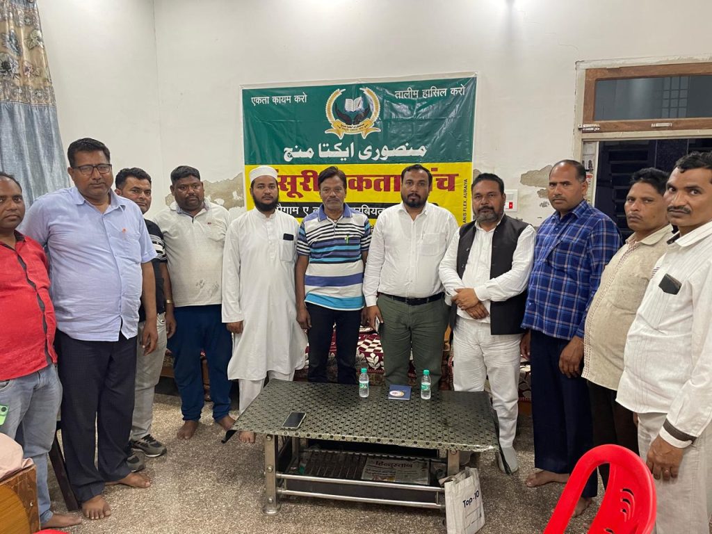 बनारस से सुभान अली की रिपोर्ट मंसूरी एकता मंच की तालीम, तरवियत, तरक्की व हक हुकूक को लेकर दिनांक 12/04/25 . .. को अनवार मंसूरी की शदारत मे मैनपुरी जनपद मैनपुरी मे एक बैठक की गई आमीन मंसूरी प्रभारी मंसूरी एकता मंच ने कहा समाज के लोग तरक्की चाहते हे तो तालीम व तरवियत पर अमल करे डा शरीफ खाँ मंसूरी संरक्षक मंसूरी एकता मंच ने कहा संगठन का राजनीति से कोई वास्ता नही हे संगठन समाज की खिदमत कर रहा हे संगठन का पैगाम तालीम हासिल कर तरवियत से आपसी भाई चारा, मोहब्बत से तरक्की हासिल करने का दीनी व दुनियाबी तरीका सिखाता हे इस मौके पर भाई एजाज मंसूरी को संगठन का उपाध्यक्ष नियुक्ति किया गया इस मौके पर सफी मंसूरी सभासद, हाफिज मोमिन, मु इरशाद, साजिद, हम्जा, आरिफ, सत्ता, शाहिद, इकरार मसूरी समेत एक सैकङा मसूरी समाज के बुद्धि जीवी लोग उपस्थित रहे बनारस से सुभान अली की रिपोर्ट