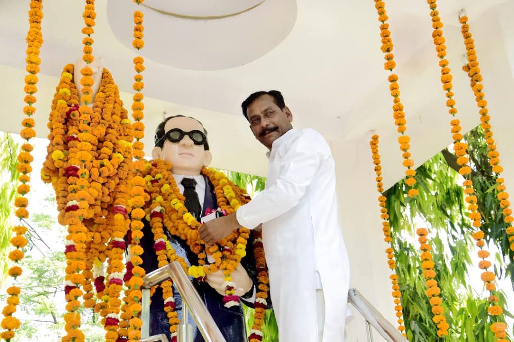 जिला पंचायत में हुआ कार्यक्रम, विधायक और डीएम ने किया माल्यार्पण, डॉ. आंबेडकर के बताए मार्ग पर चलने का किया आह्वान