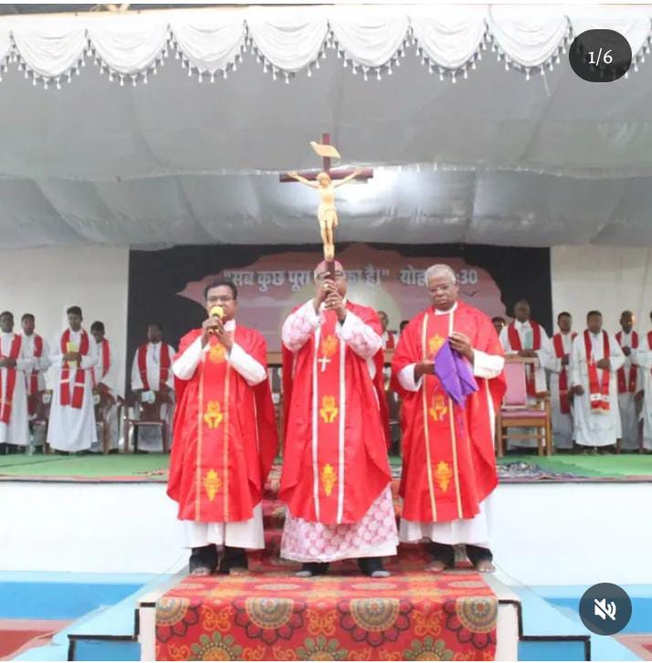 मसीही समाज के गुड फ्राइडे पर महा गिरजाघर में परंपरागत ढंग से हुए विविध धार्मिक अनुष्ठान हिमांशु राज एम.डी .न्यूज़ छत्तीसगढ़ 22 ब्यूरो के अंबिकापुर जिला सरगुजा छत्तीसगढ़। गुड फ्राइडे के अवसर पर नवापारा स्थित बेदाग ईश माता गिरजाघर में परंपरागत ढंग से विविध धार्मिक अनुष्ठान संपन्न हुए । पुण्य शुक्रवार के समस्त धार्मिक अनुष्ठान अंबिकापुर धर्म प्रांत के धर्म अध्यक्ष विशप अंतोनिस बडा की अगुवाई में फादर विलियम उर्रे व पल्ली पुरोहित फादर जार्ज ग्रे कुजूर ने संयुक्त रूप से संपन्न कराया। उन पलों को याद कर दोपहर 2:00 बजे से क्रूस रास्ता कार्यक्रम पटेल पारा की अगुवाई में 14 चौदह टोला के लोगों ने क्रमवार मिलकर संपन्न कराया भक्ति में गीतों की मनमोहक प्रस्तुति सिस्टर सबीना केरकेटा की अगुवाई में होली क्रॉस और पटपरिया की टीम भक्तों के बीच संपन्न हुआ। पूर्व महापौर अजय तिर्की राजेंद्र तिग्गा कैथोलिक सभापति फ्रांसिस क्रिकेटर रूबेन तिग्गा ,दो रोजलीन जगजीत मिंज, अजय अरुण मिंज, भानु खलको ,फादर मुक्ति फादर पीटर,फादर अमृत ,फादर जॉन कुजूर वह बड़ी संख्या में मसीही उपस्थित रहे।